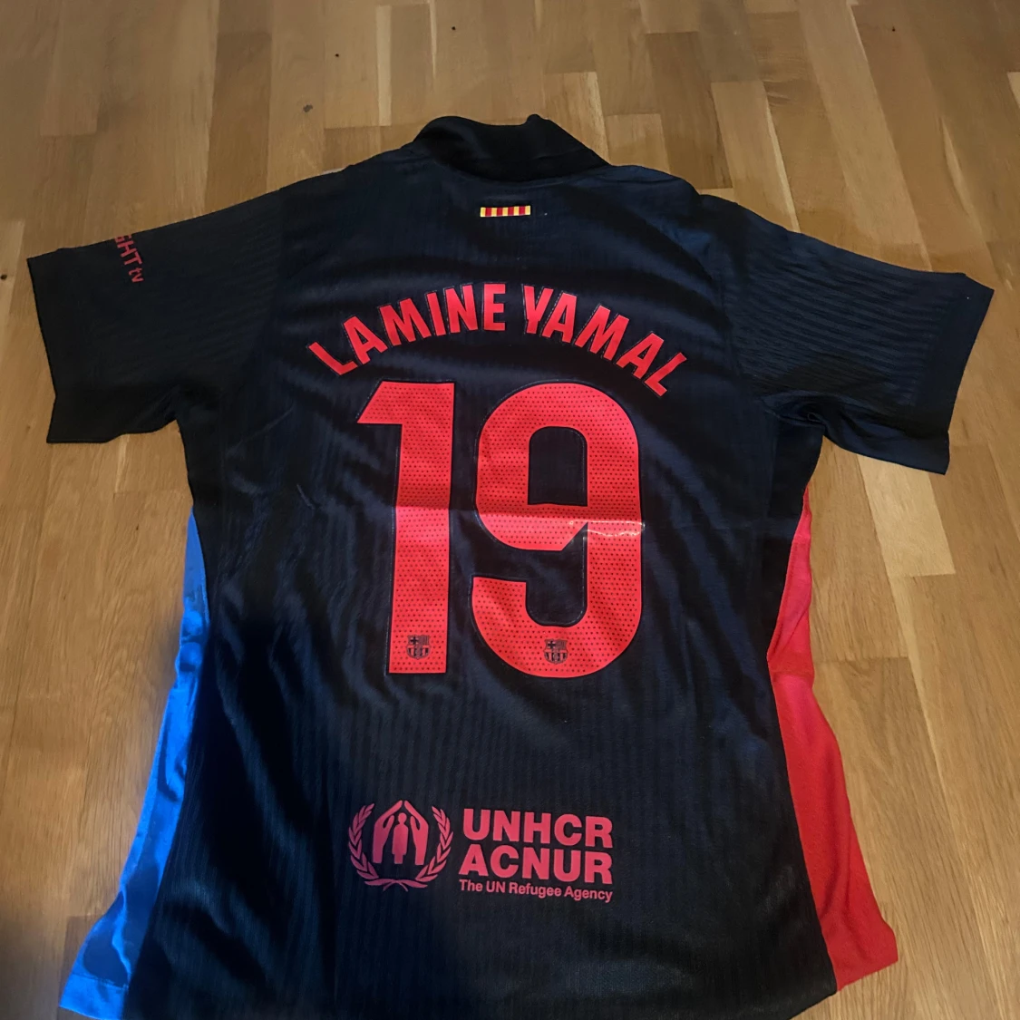Snygg svart FC Barcelona tröja med Lamine Yamal, 19 på ryggen. Barcelona X Travis scott. Storlek L men passar mer som M, säljer såhär billigt pga att den passade inte mig i storleken