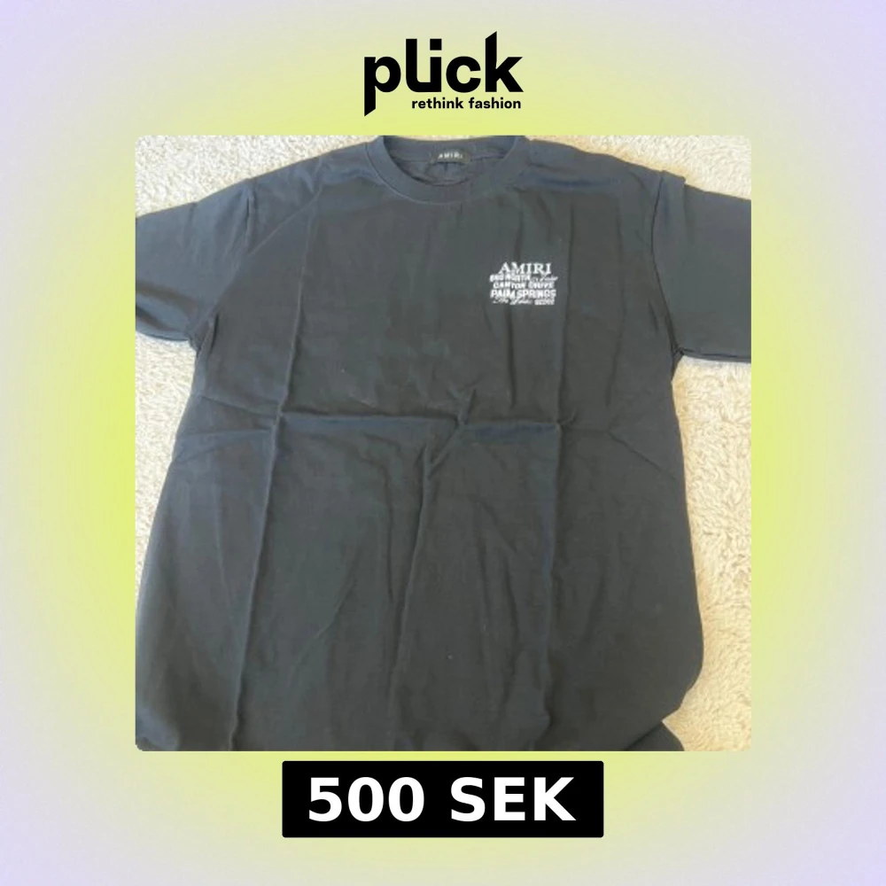 Snygg svart t-shirt från Amiri med tryck på både fram- och baksidan. Framsidan har en liten vit text på bröstet medan baksidan har ett stort tryck med text och rosa benkors. Perfekt för en cool och avslappnad stil.