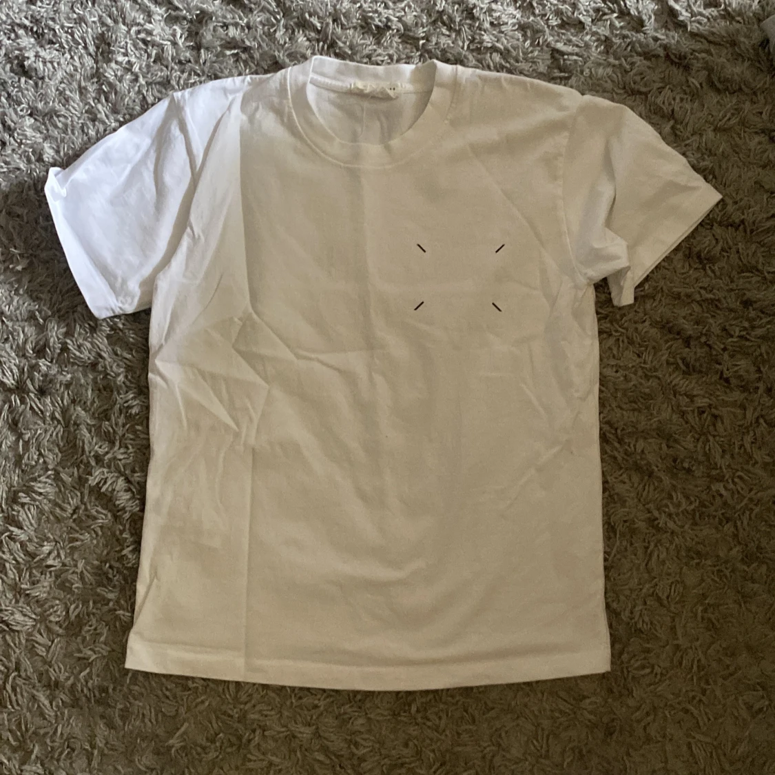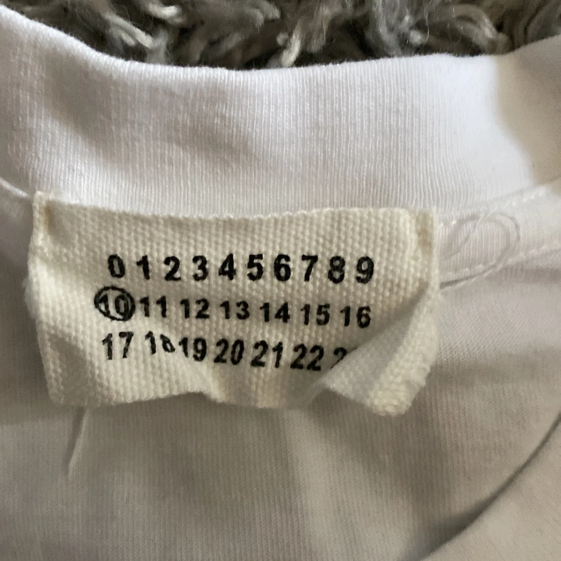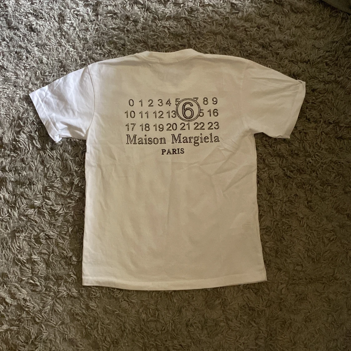 Vit t-shirt från Maison Margiela med ikoniskt siffertryck och logga på ryggen. Gjord i mjuk bomull och är i storlek M.