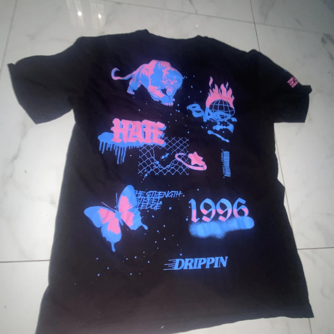 As cool graffiti inspirerad t-shirt från new yorker. Köpt för cirka ett år sen så den säljs inte längre i butik. Den är som helt ny. Skriv för fler frågor eller annat.