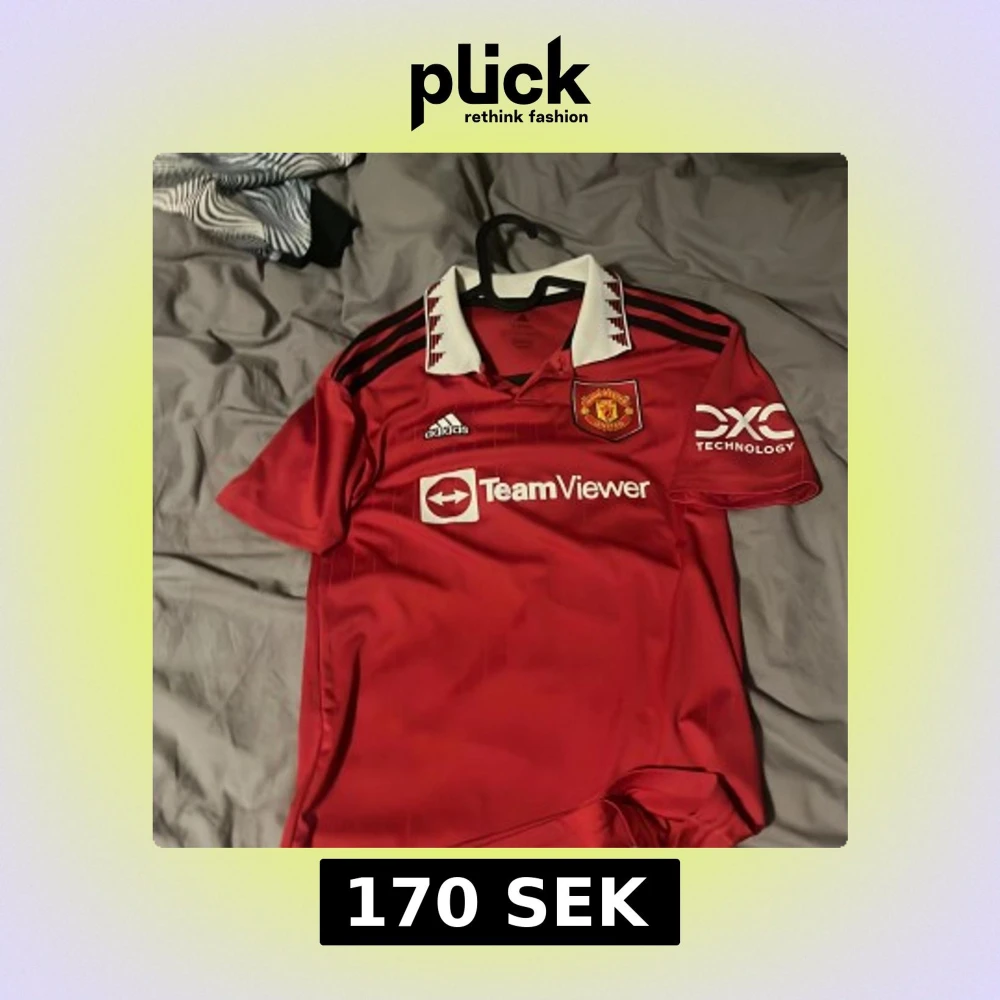 Manchester Uniteds officiella matchtröja från Adidas i rött med vita och svarta detaljer. Klassisk krage med mönster, klubbmärke broderat på bröstet och TeamViewer-logga. Tillverkad i lätt och ventilerande polyester, perfekt för fotboll eller supporterliv.