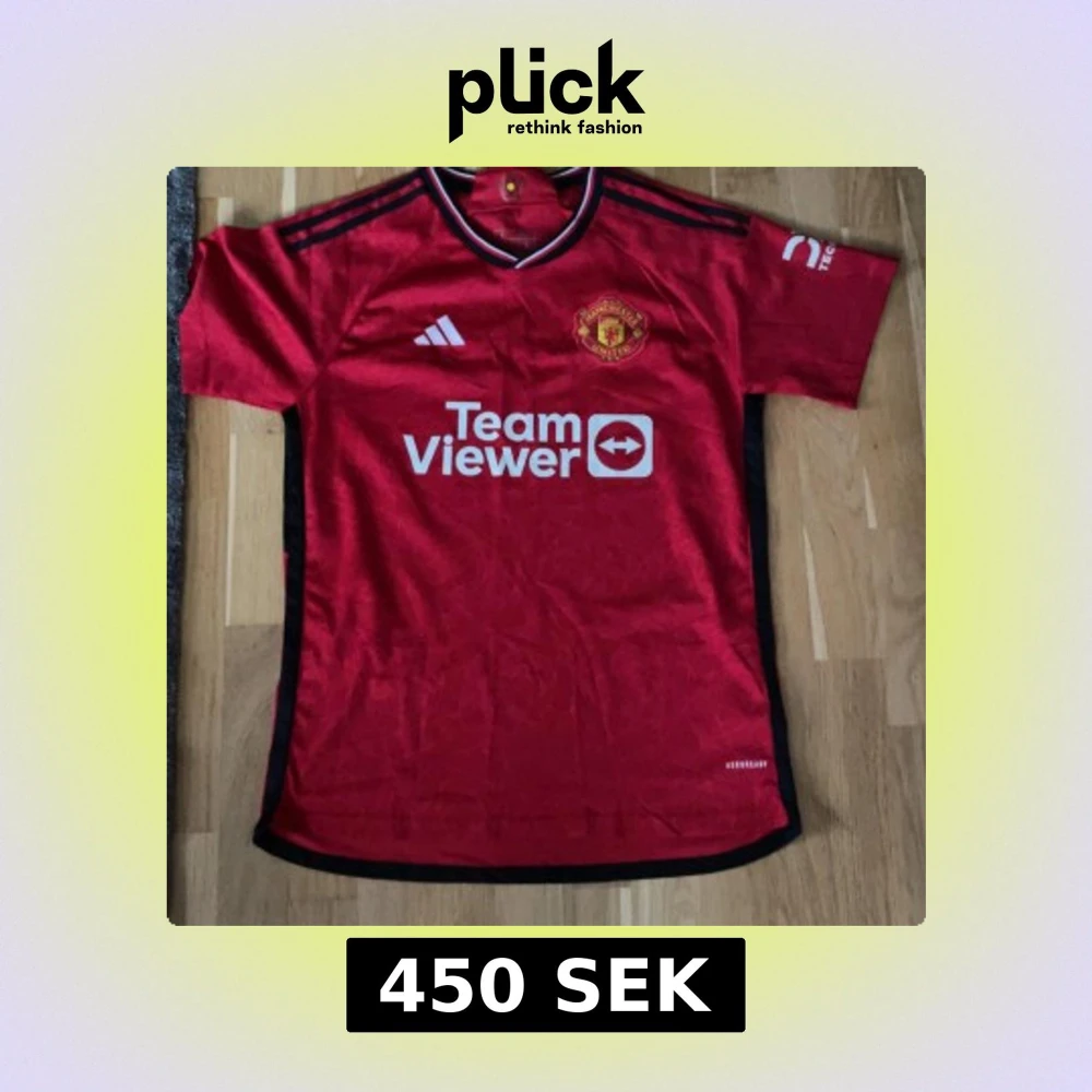 Manchester Uniteds officiella matchtröja från Adidas i rött med svarta detaljer och vita loggor. Klassisk V-ringning med svart och vit kant, klubbmärke på bröstet och TeamViewer-tryck. Tillverkad i lätt funktionsmaterial för bästa komfort.