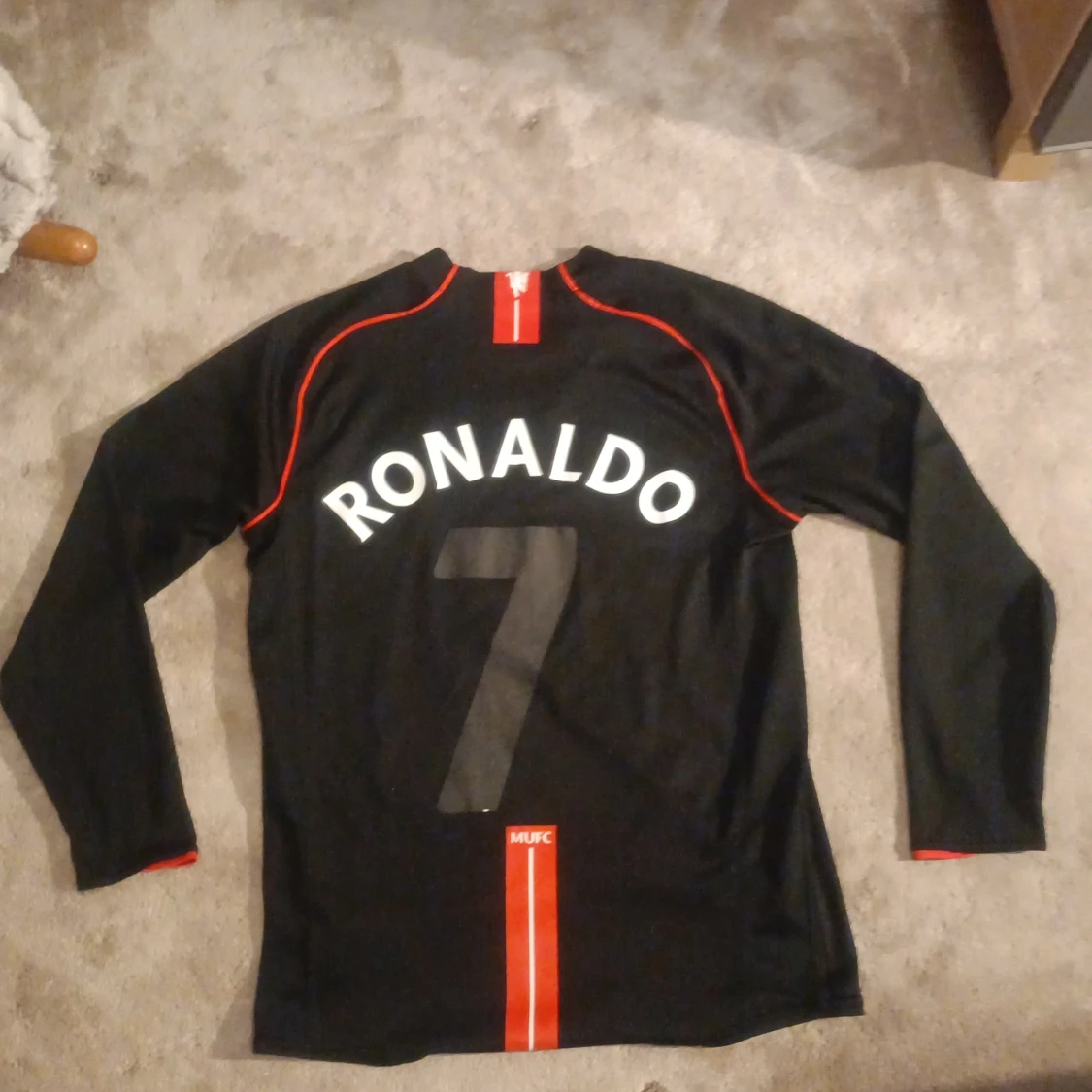 En Manchester United fotbollströja från säsongen 07/08. Väldigt fint skick för sin ålder förutom att sjuan på ryggen försvunnit. En väldigt snygg fotbollströja och för dig som gillar lite retro😁
