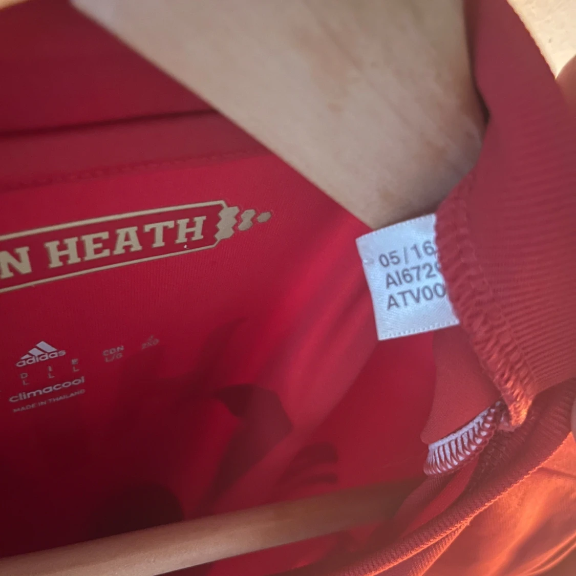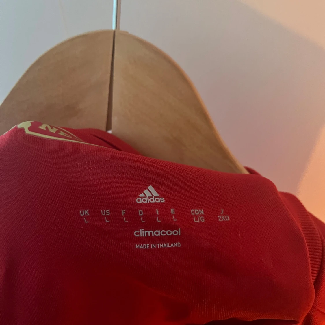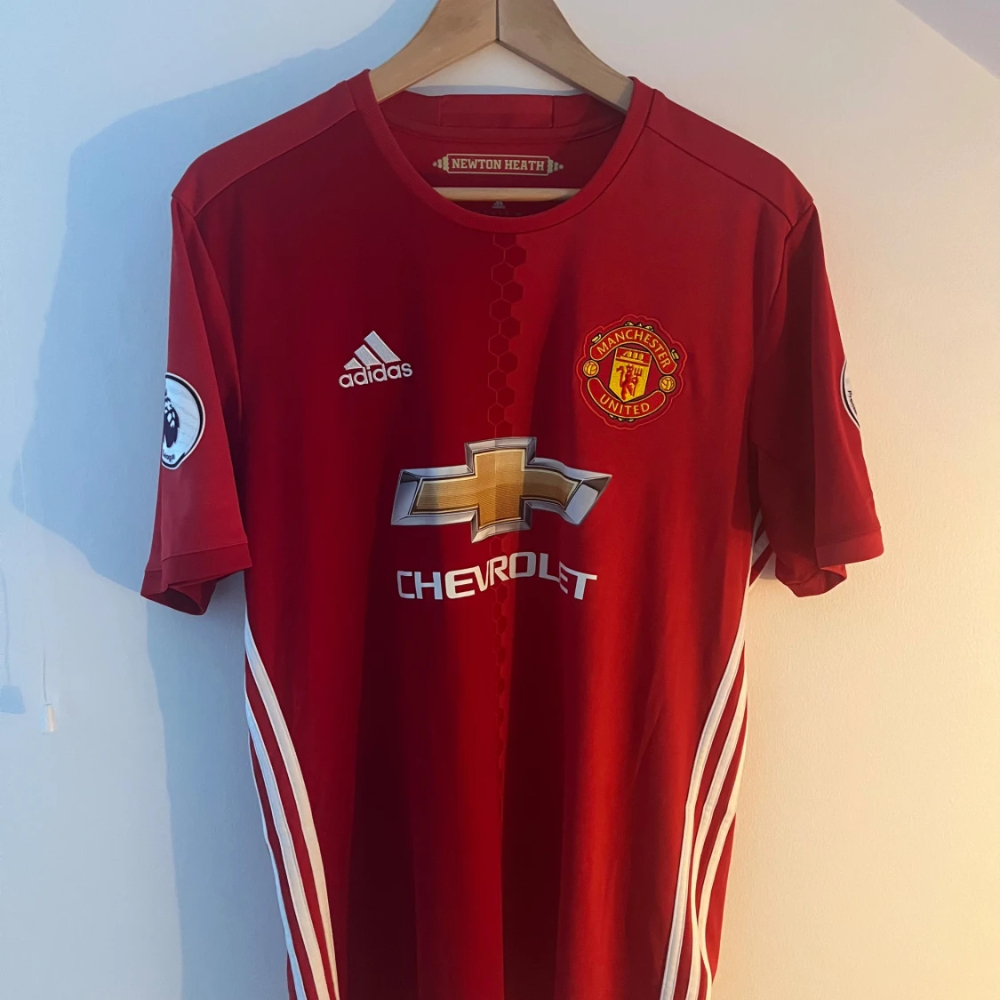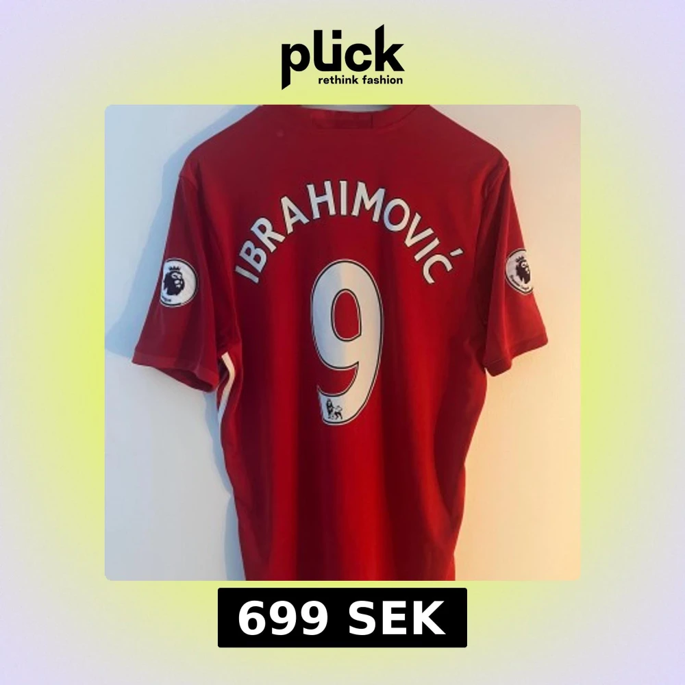 Röd Manchester United matchtröja med Ibrahimovic och nummer 9 på ryggen. Adidas Climacool-material, Premier League-patch på ärmarna och klassiska klubbmärket samt Chevrolet-logga på bröstet. Snygga vita detaljer och tryck, perfekt för fans av Zlatan.