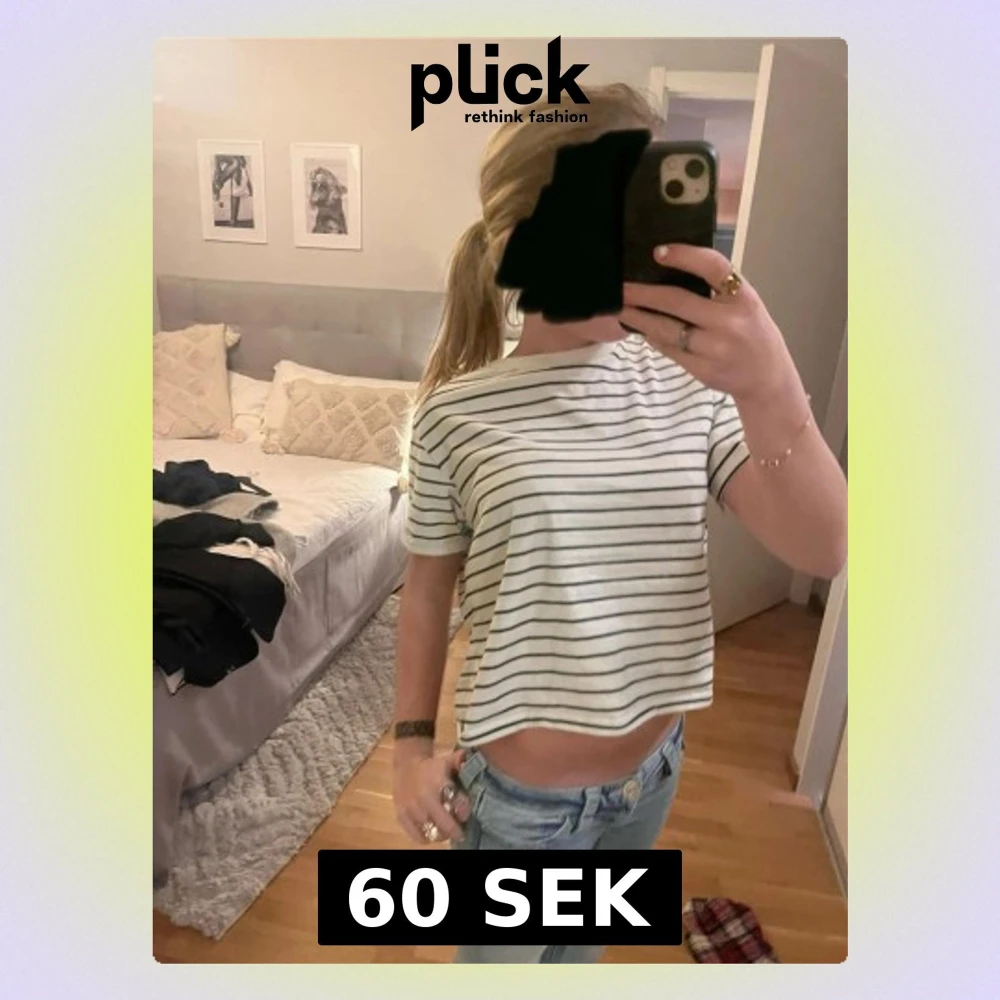 Säljer en vit croppad t-shirt med svarta horisontella ränder. T-shirten har korta ärmar och en avslappnad passform som sitter snyggt på kroppen. Perfekt för dig som gillar en enkel och fräsch stil med lite edge.