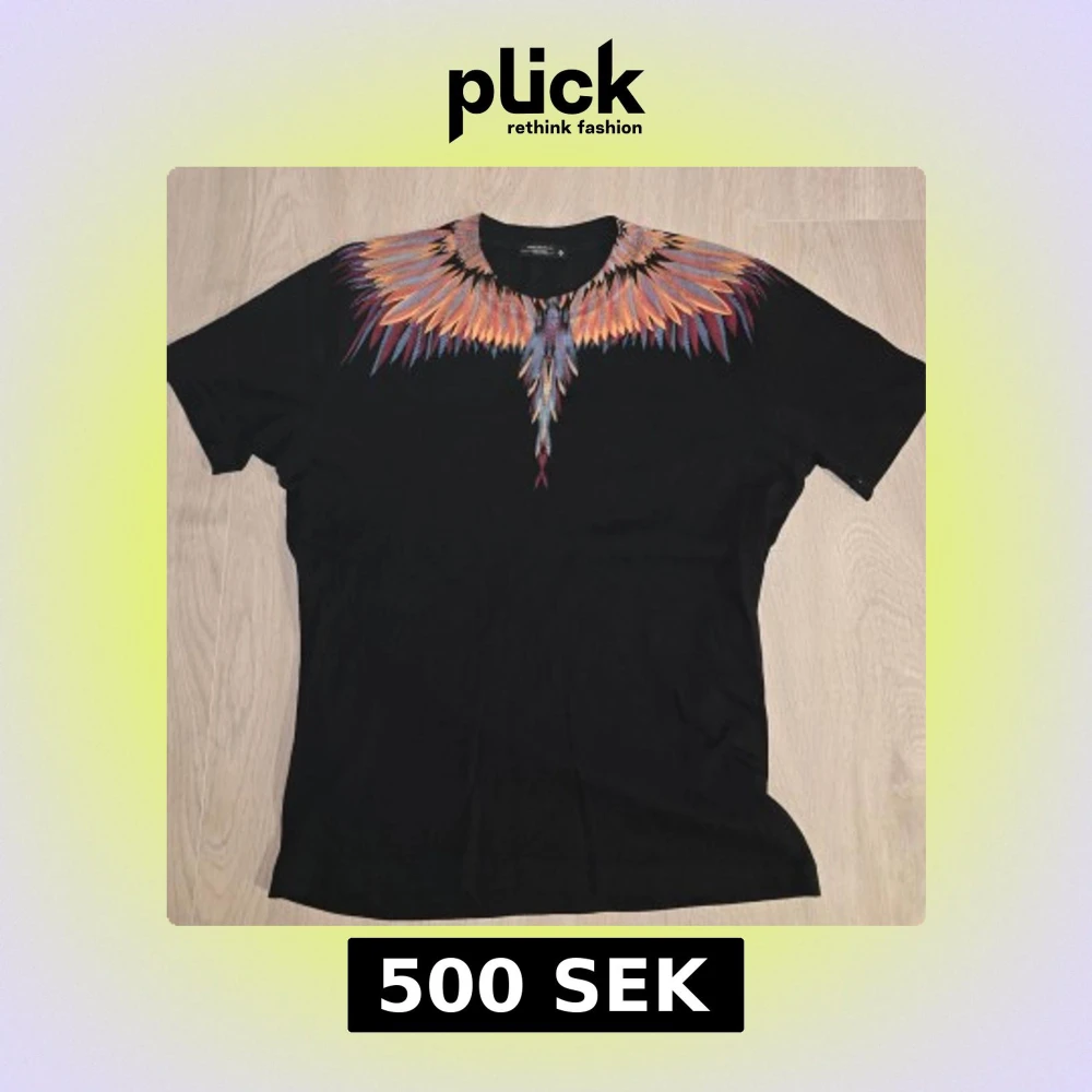 Svart t-shirt från Marcelo Burlon med ikoniskt färgglatt fjädertryck runt halsen i orange, blått och lila. Klassisk passform och korta ärmar. Tillverkad i mjuk bomull, perfekt för dig som vill sticka ut med en unik design.