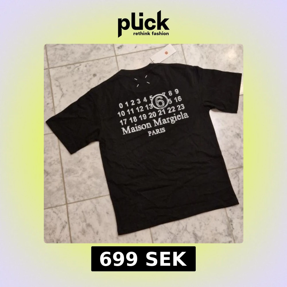 Svart t-shirt från Maison Margiela med ikoniskt siffror-tryck och logga på ryggen. Klassisk rund hals, korta ärmar och diskreta vita stygn på bröstet. Tillverkad i mjuk bomull för en skön känsla. Storlek M. Perfekt för dig som gillar streetstyle och designerplagg. Tryck på ryggen och den ikoniska stitch loggan på framsidan. Hör av er vid minsta fråga 🤍🙌