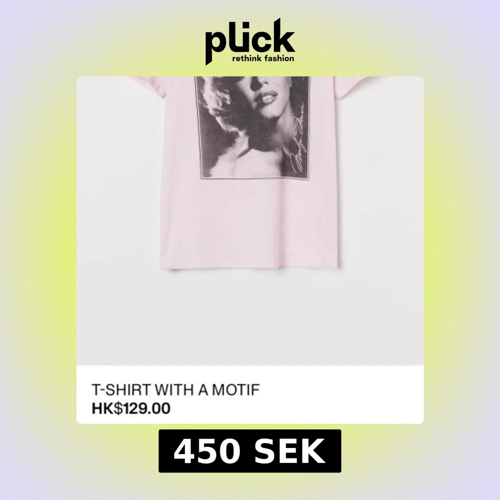 Snygg ljusrosa t-shirt med stort svartvitt tryck av Marilyn Monroe på bröstet. Nypris 129$/1200 kr Klassisk passform med korta ärmar och rund hals. Perfekt statement-plagg för dig som gillar ikoniska motiv och vill sticka ut lite extra.