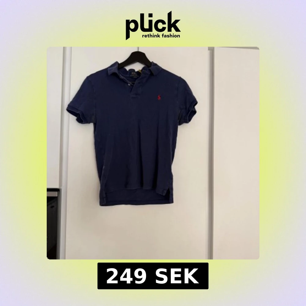 Klassisk marinblå pikétröja från Polo Ralph Lauren med korta ärmar och röd broderad logga på bröstet. Tröjan har krage och knappar vid halsen, tillverkad i mjuk bomull för en skön känsla.
