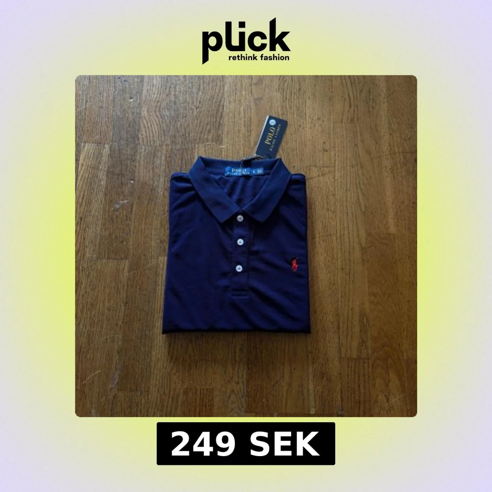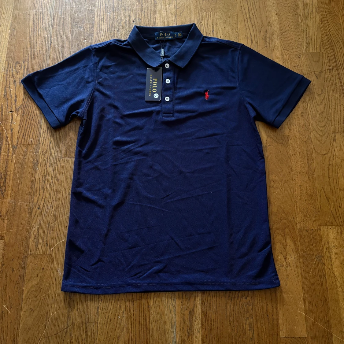 Snygg marinblå t-shirt från Polo Ralph Lauren med klassisk krage och tre vita knappar framtill. Ikonisk röd logga broderad på bröstet. T-shirten är kortärmad och gjord i mjuk bomull som känns skön mot huden. Perfekt för en chill och stilren look.