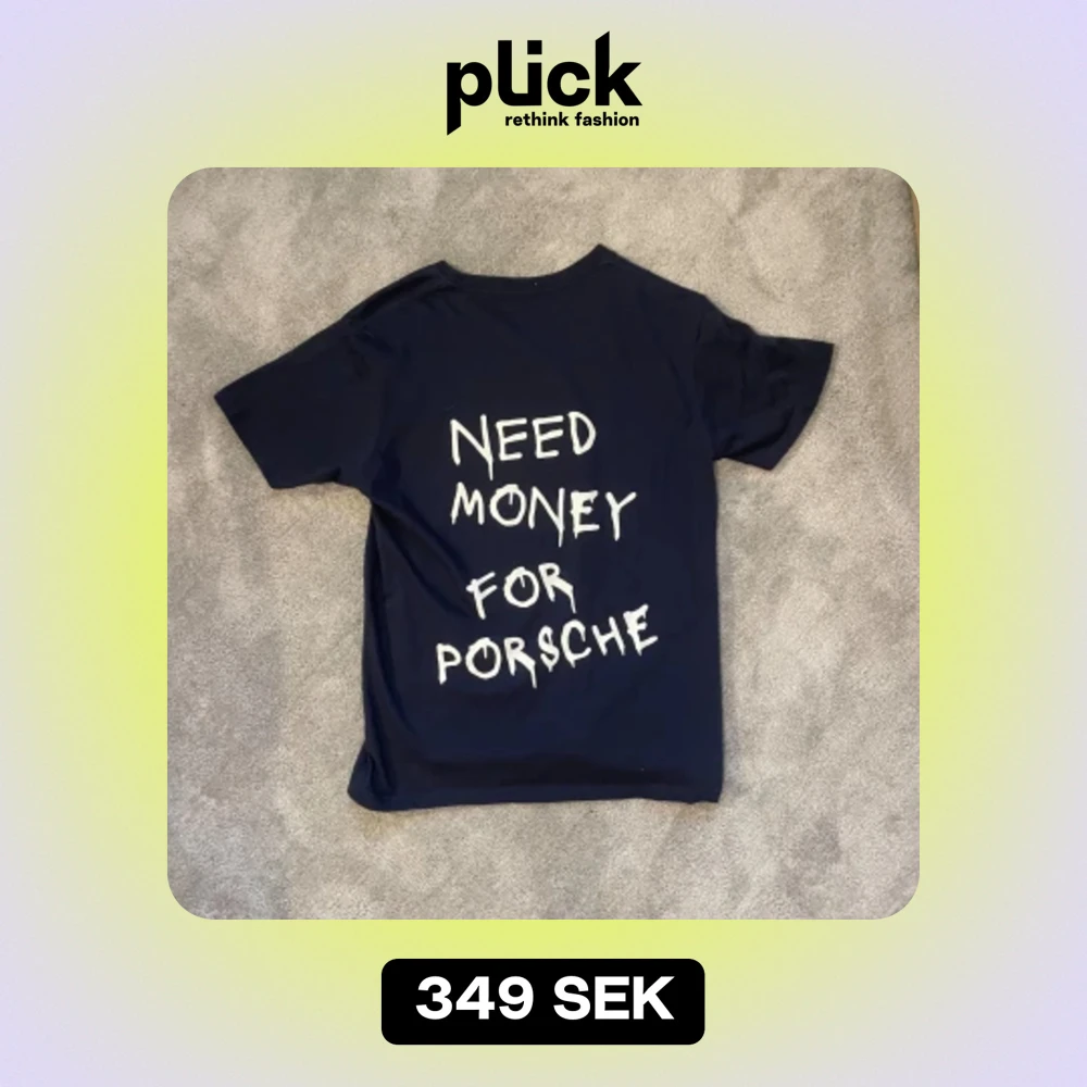 En riktigt fet t-shirt som är perfekt nu på sommaren. Hög kvalite på materialet. Tröjan har ett tryck på ryggen där det står ”need money for porsche”. Storleken är S. Har en likadan fast i vit färg på min profil. Skriv vid funderingar. 👕