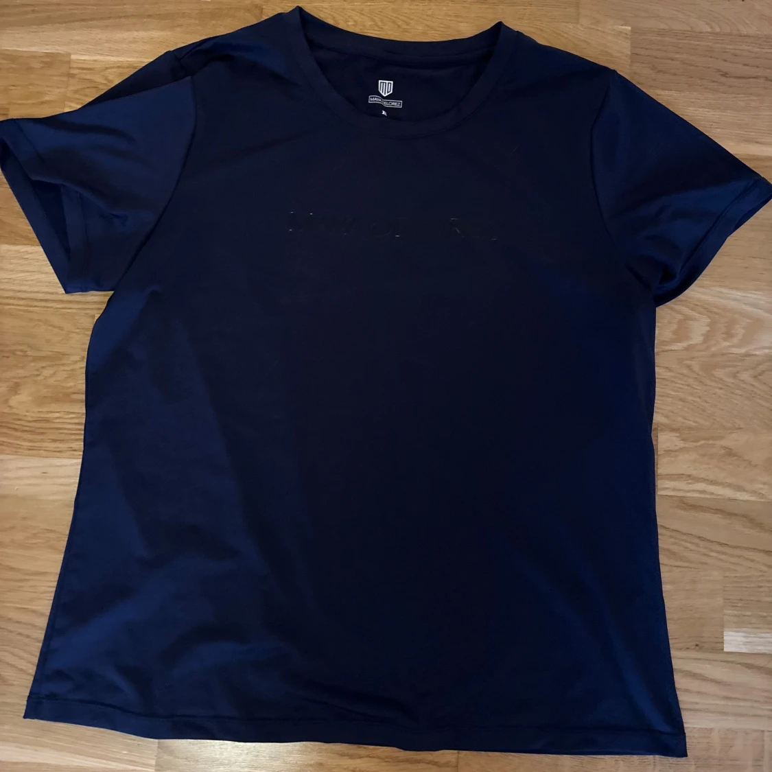 Snygg Marinblå t-shirt från Maya Delorez med logga framtill. Klassisk rund halsringning och korta ärmar. Skön och lätt i materialet, perfekt till stallet eller vid träning. Passformen är normal och tyget känns mjukt mot huden. Passar som en oversiezed S-M