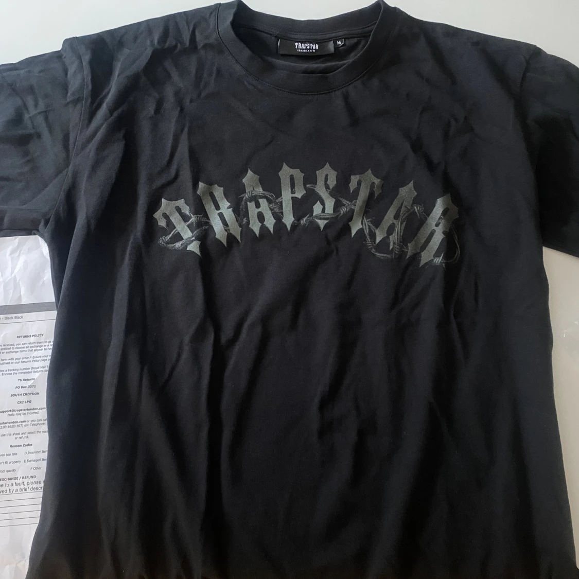 Säljer en självklart äkta trapstar tshirt då den var för stor för mig. Den är lite oversized skulle jag säga i modellen. 10/10 skick då jag endast provat den, kommer i sin förp. Modellen heter Barbed Wire Arch Tee - Black Black Modellen känns oversized.