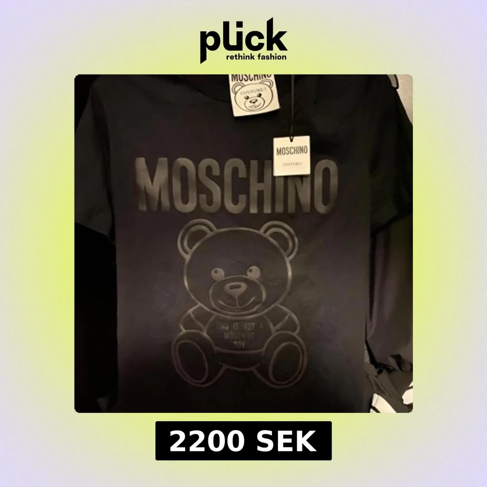 Cool svart t-shirt från Moschino med stort björntryck och logga framtill. T-shirten har klassisk passform och är tillverkad i mjuk bomull. Perfekt för dig som vill sticka ut med en ikonisk design. Varan är äkta, tveka inte att kontakta vid flera funderingar. Orginalpris 2999kr. Helt oanvänd. Storlek 48 vilket motsvarar M