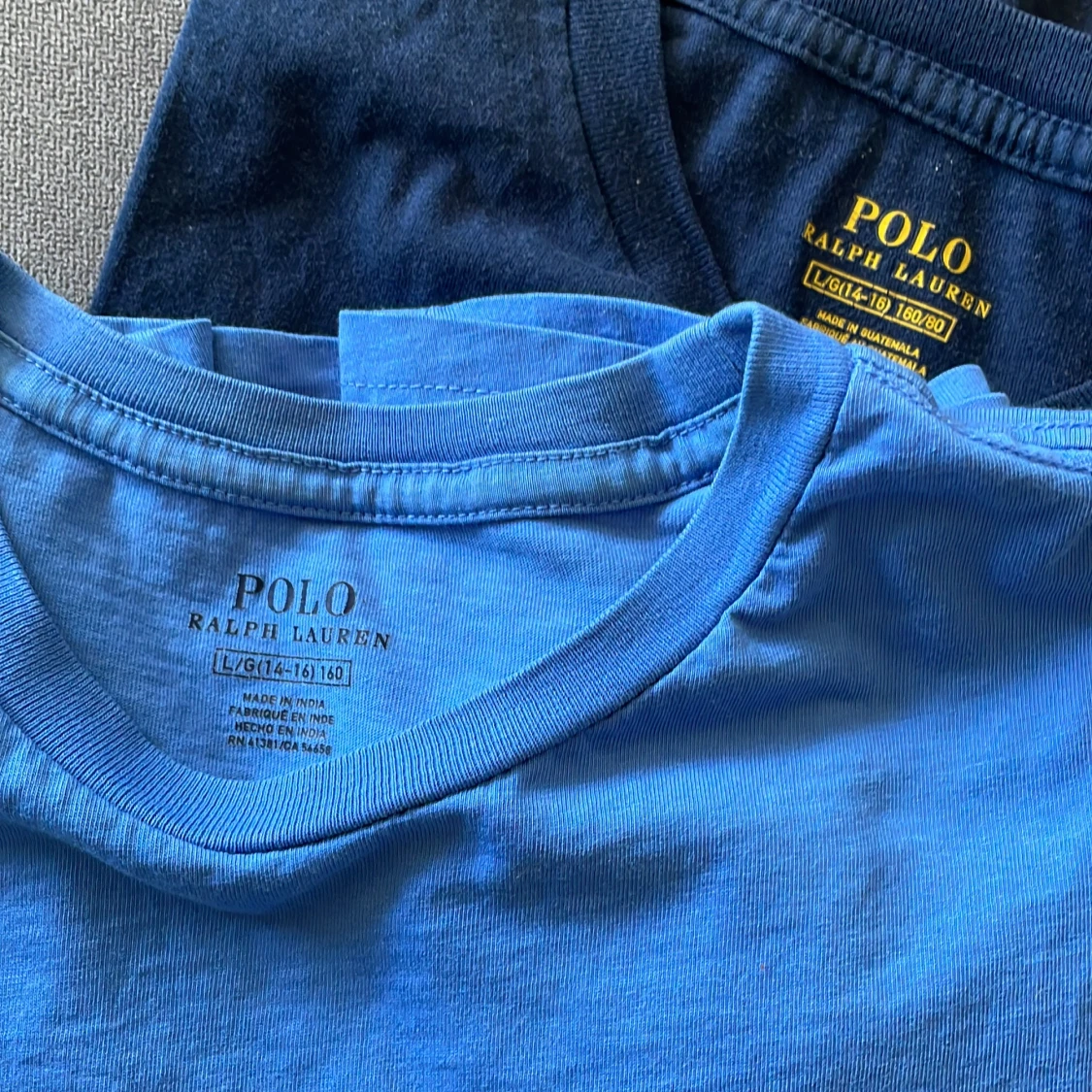 Polo Ralph lauren (ljus- och mörkblå) stl. L/160/14-16år. Använt skick men hel och ren. Gant stl. 176 Pris kan diskuteras