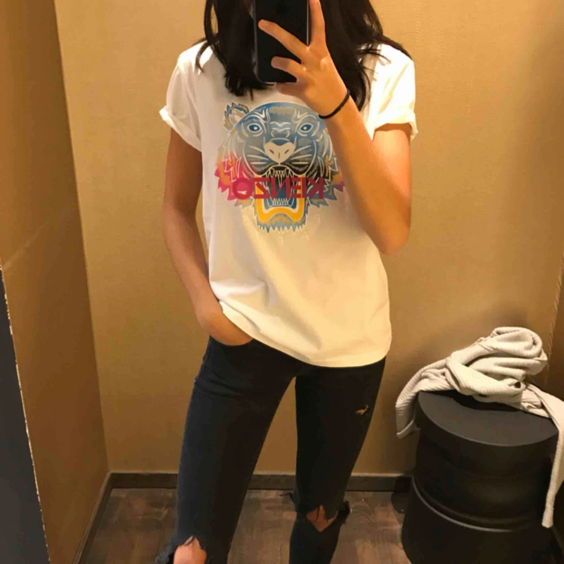 Kenzo T-shirt använd på tok för lite därav säljer jag den. (Har inte bråttom med att sälja) Storlek M men liten i storlek. Nypris 999kr köpt på Nk i Göteborg förra året sen sommaren.