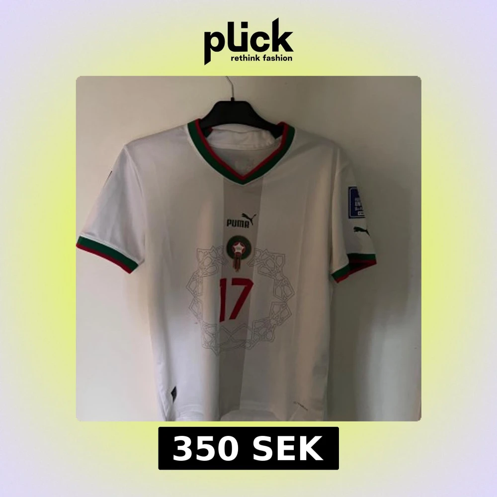 Snygg Marocko landslagströja från Puma med Boufal och nummer 17. Vit bas med röda och gröna detaljer på krage och ärmslut, samt tryck i rött och grönt. Korta ärmar och officiella VM-märken på ärmarna. Tillverkad i lätt och ventilerande material.