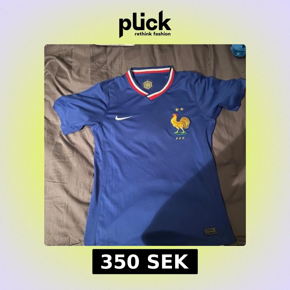 Hej, säljer denna fotbolls tröja från em 2024 med Mbappe på ryggen, tröjan ör i storlek M vid frågor eller funderingar är det bara skriva!!