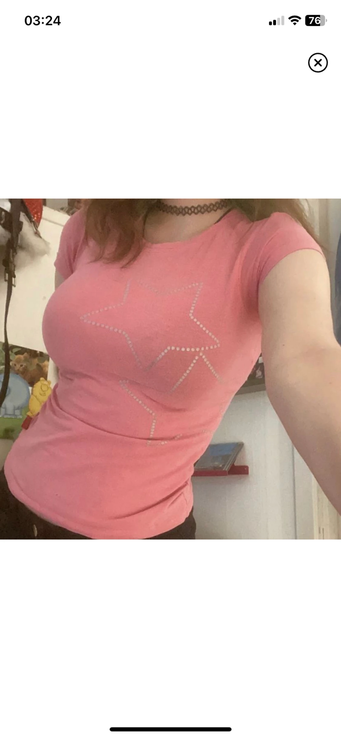 jättesöt rosa babytee med stjärnor på. har tyvärr en liten fläck (syns på bilden) men annars i bra skick! PÄLSDJUR I HEMMET!