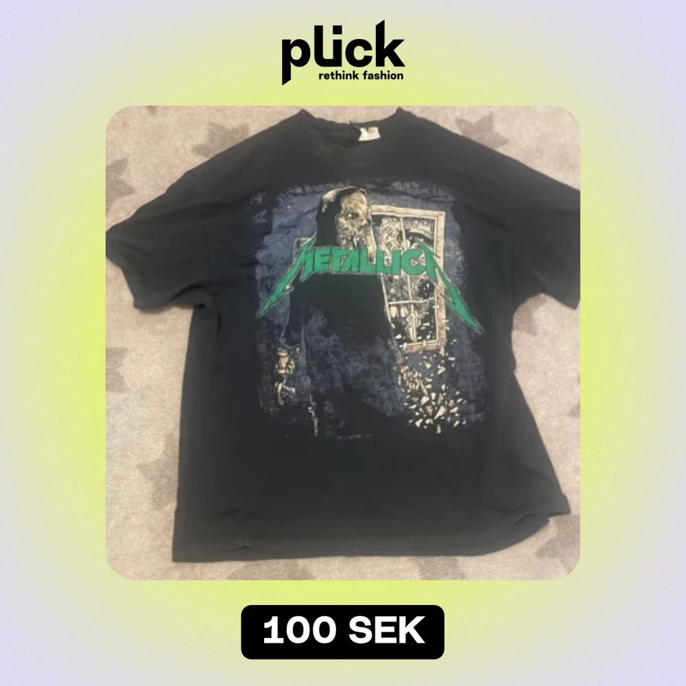 Bajsigt snygg oversided metallica tröja från hm, den är storlek xs men passar som M eller L, jag har haft för ganska länge nu, ja har älskat den väldigt mycket men den är inte riktigt min stil längre. Köpt för typ 200kr, pris går att diskutera 💛
