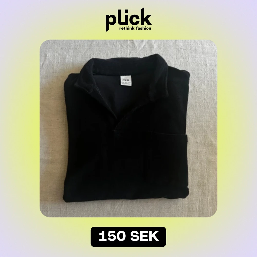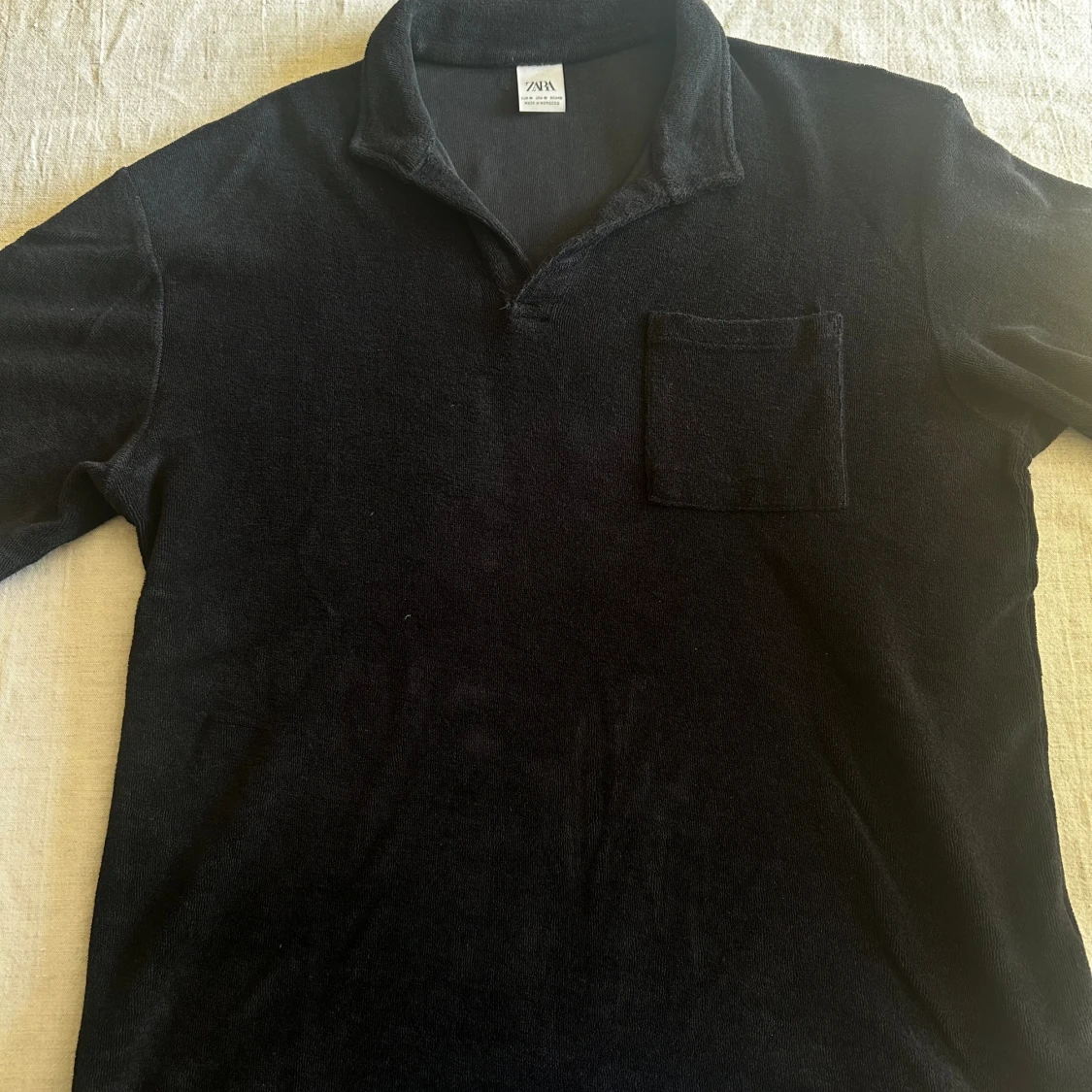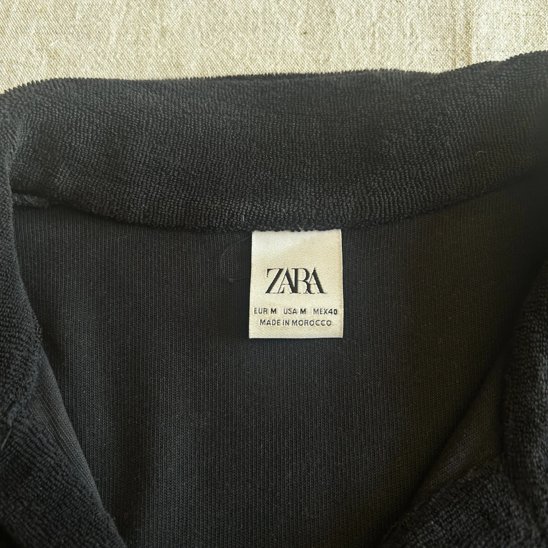 Svart pikétröja i frotté från Zara i fint skick. Använd ett fåtal gånger. Strl: M
