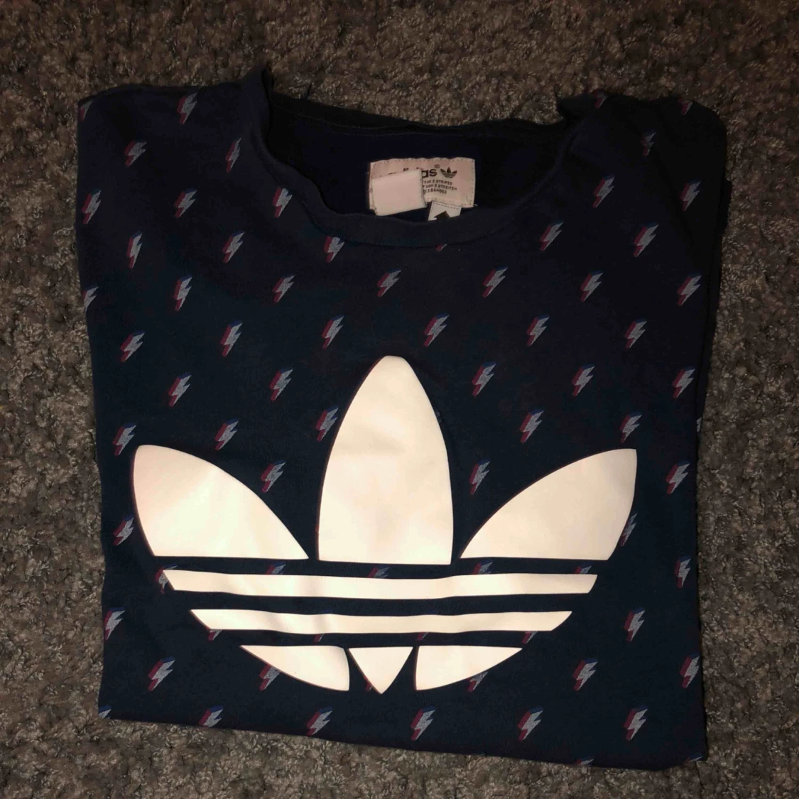 skitcool Adidas Trefoil t-shirt!! vet ej vad den är köpt då jag fick den som en present. Väldigt bra skick (8/10) och använt den inte alldeles för ofta då att den är sliten. Har även ett coolt litet märke vid endan av tröjan med en text.