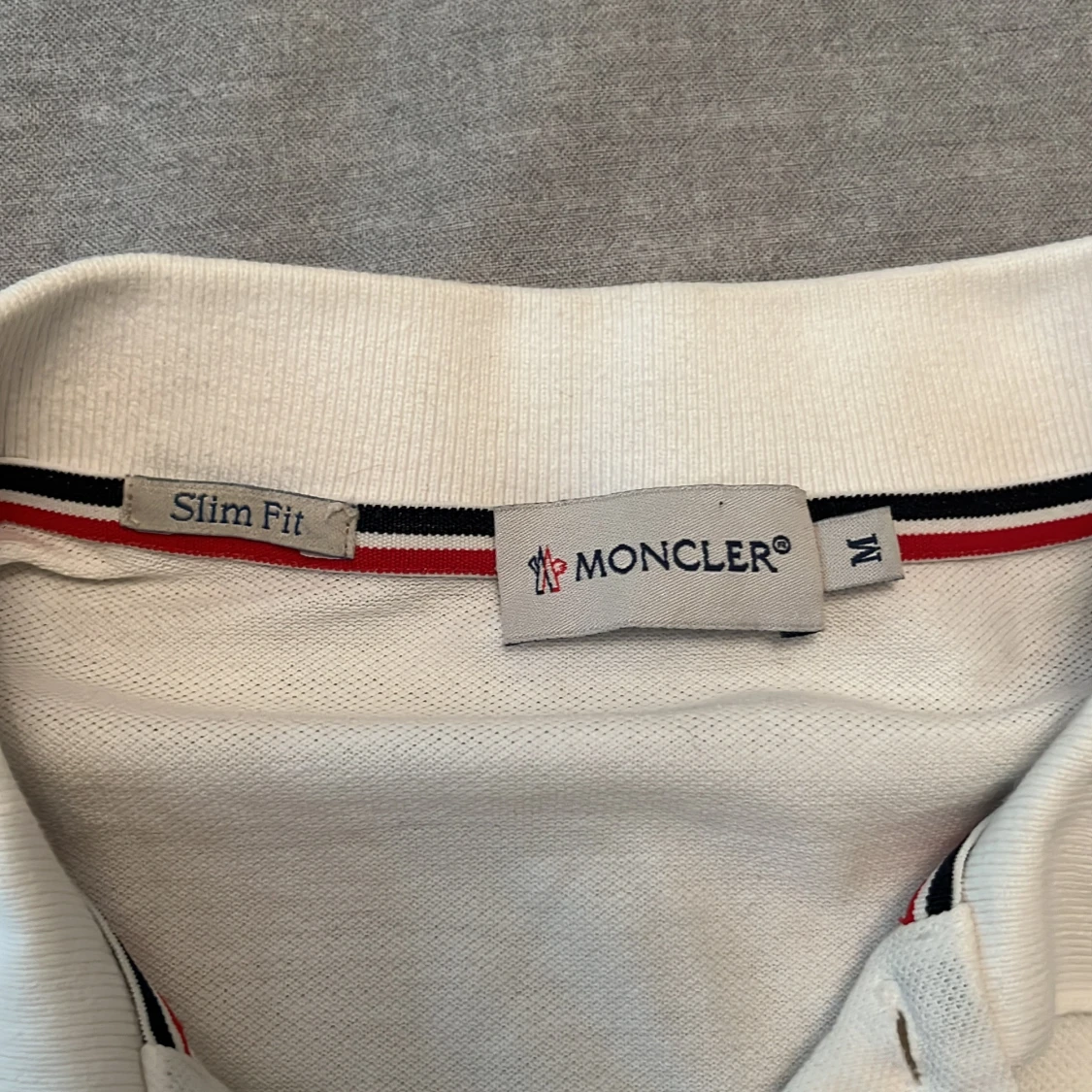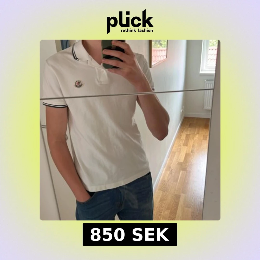 Säljer en 100% äkta vit pikétröja från Moncler 🔥 Går att verifiera äktheten på monclers hemsida med koden på bild 4. Storlek M men passar S också. Har en liten missfärgning vid kragen som knappt syns (se bild 5) men utöver det inga defekter. Priset är inte satt i sten vid snabbt köp! Hör av er vid frågor 🙌