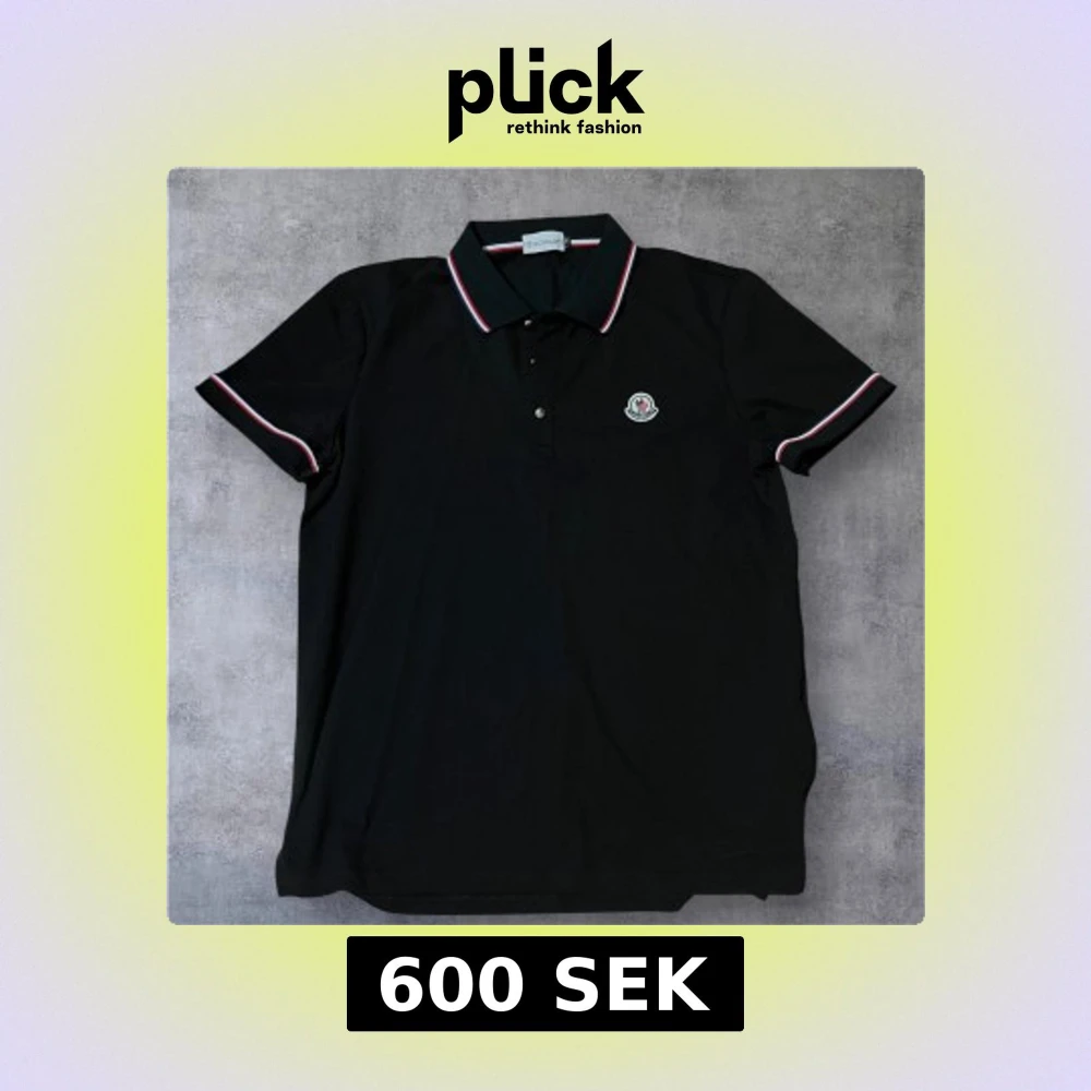 Storlek M-S. Svart pikétröja från Moncler med korta ärmar och klassisk krage. Tröjan har snygga rödvita ränder på krage och ärmslut samt Moncler-logga på bröstet. Tillverkad i mjuk bomull som känns skön mot huden. Perfekt för dig som gillar stilren design med en sportig touch.