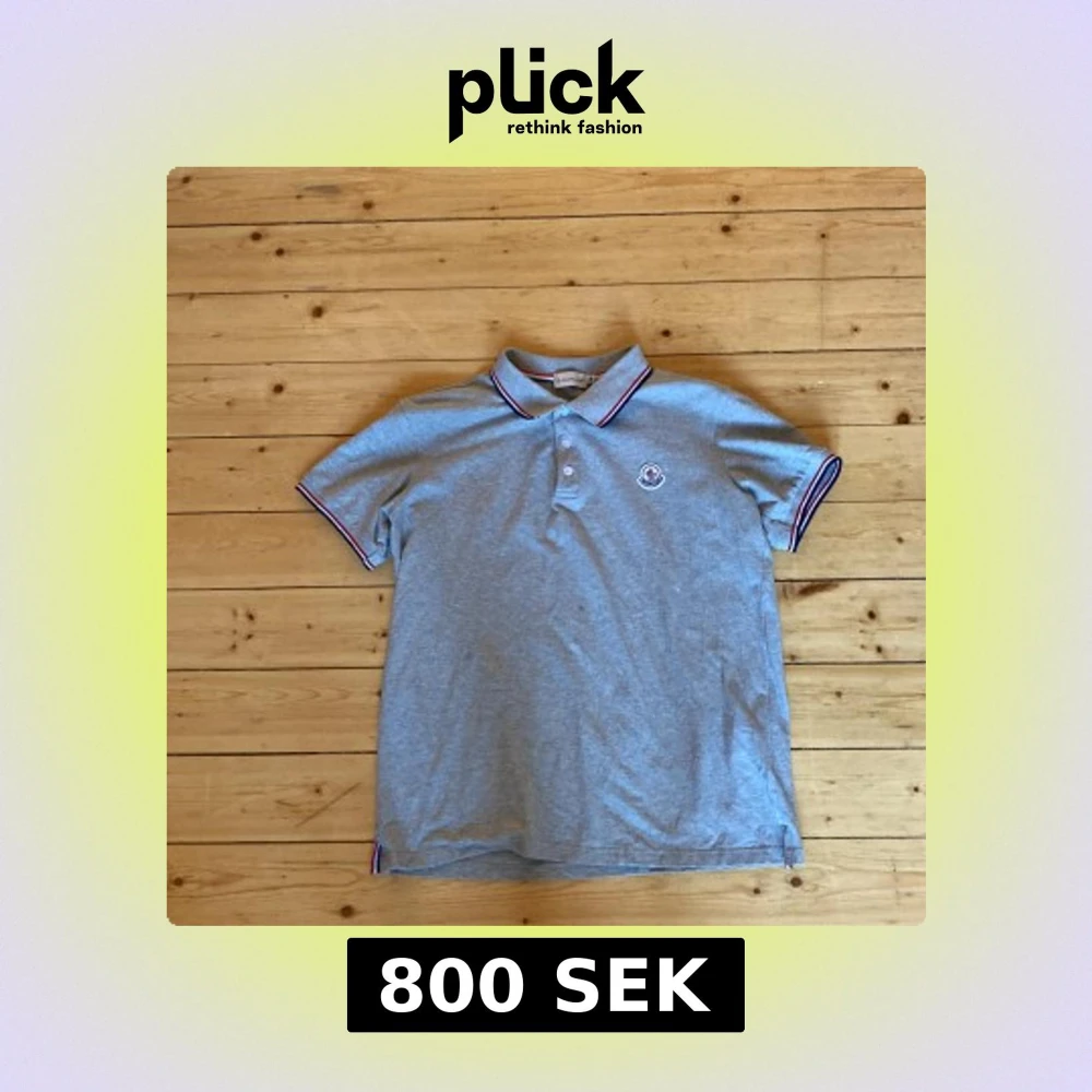 Snygg grå pikétröja från Moncler med klassisk krage och knäppning framtill. Tricolore-detaljer i rött, vitt och blått på krage och ärmslut. Broderad Moncler-logga på bröstet. Perfekt för en clean och sportig look.