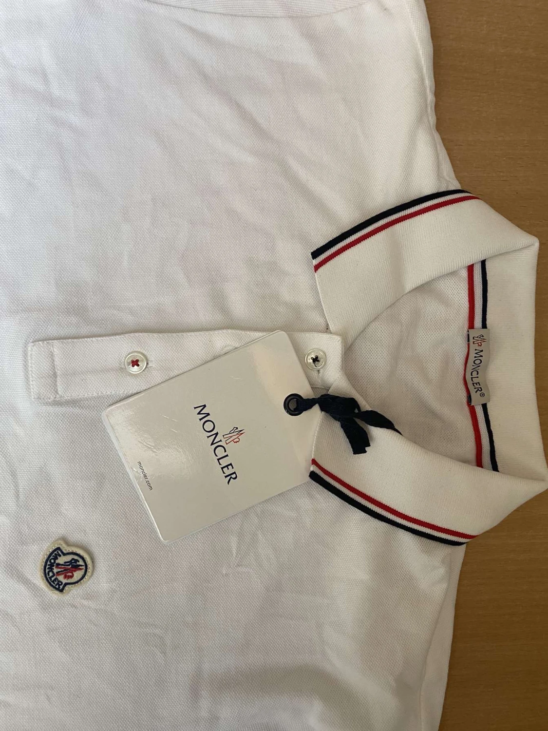 Vit Moncler Piké i storlek M till salu. NFC skann finns. Den är i nyskick och jättebra kvalite. Skriv gärna om du är intresserad
