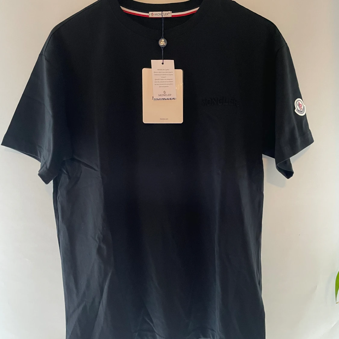 Moncler T-Shirt. Med patchen på sidan. Tröjan är storlek M, aldrig använd. Hör av dig om du har några frågor😀