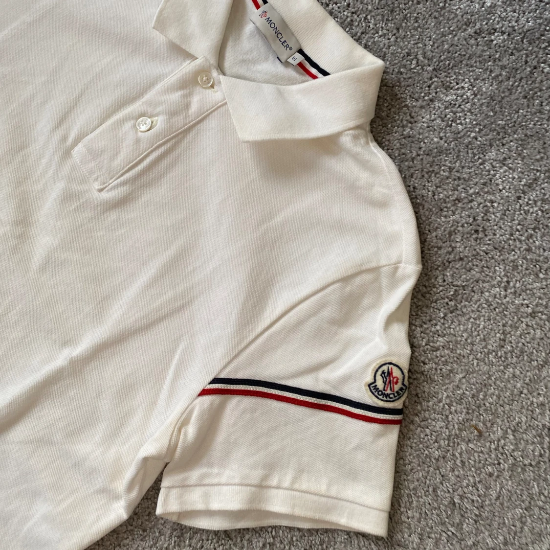 Tjena säljer denna vita Moncler Pike i storleken S. Skick: 8,5/10. Bara att höra av dig för fler bilder/frågor.