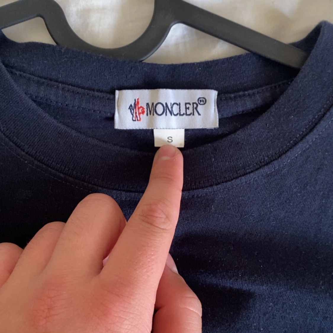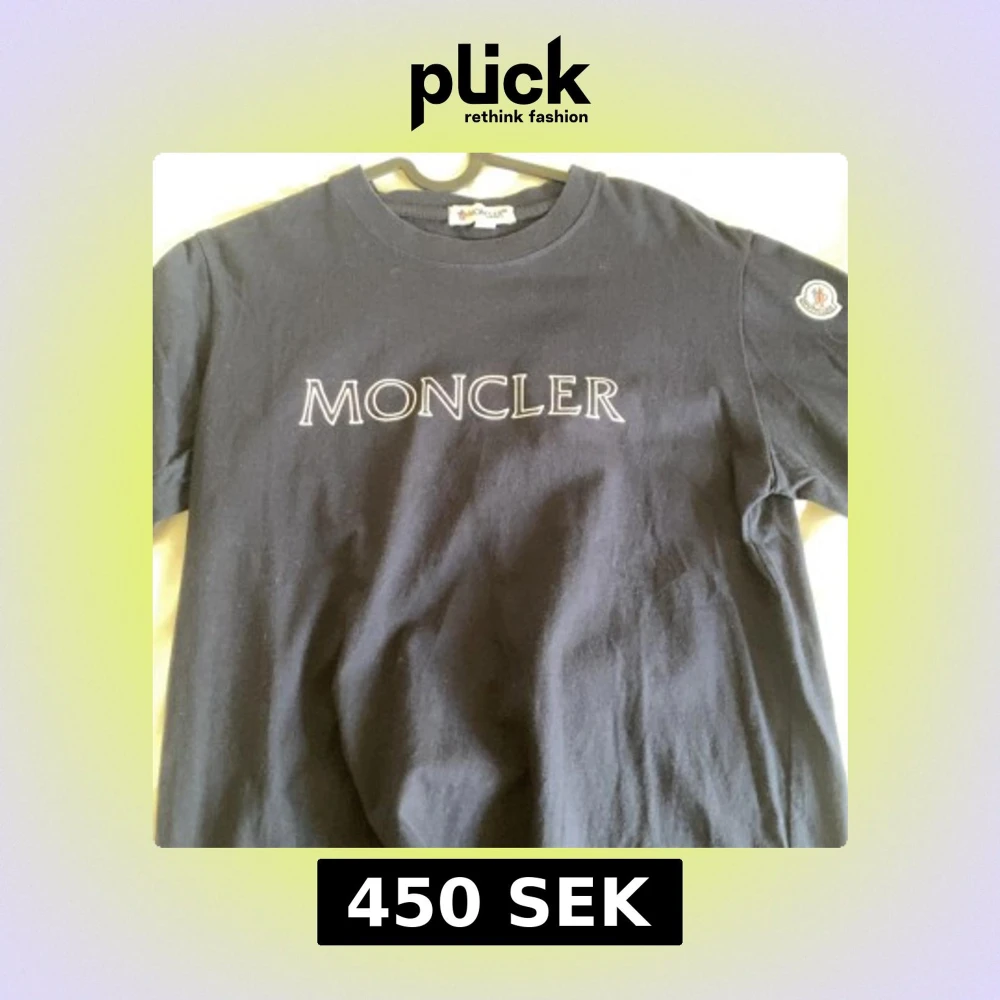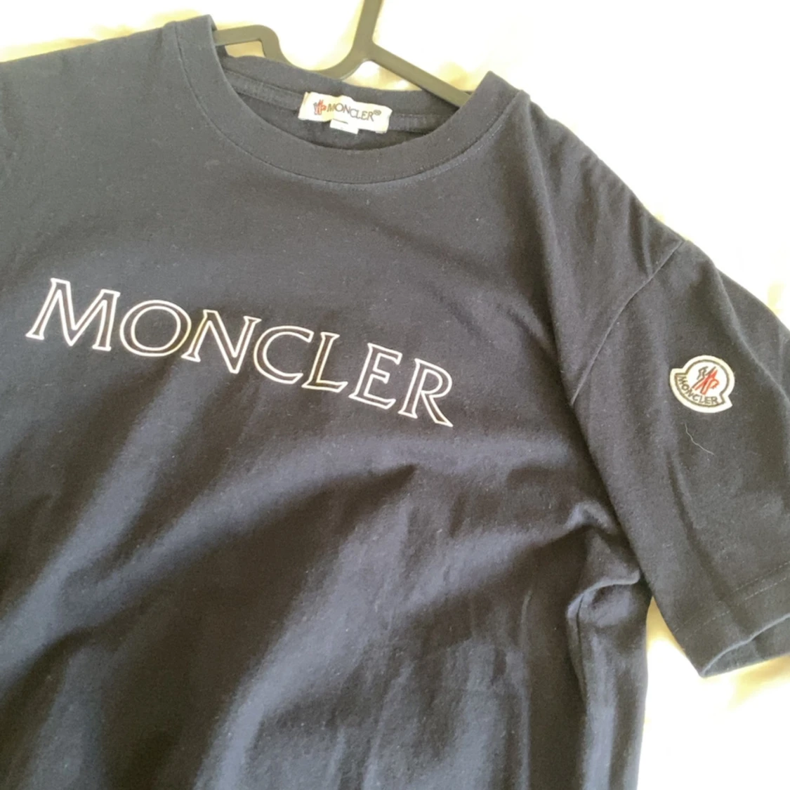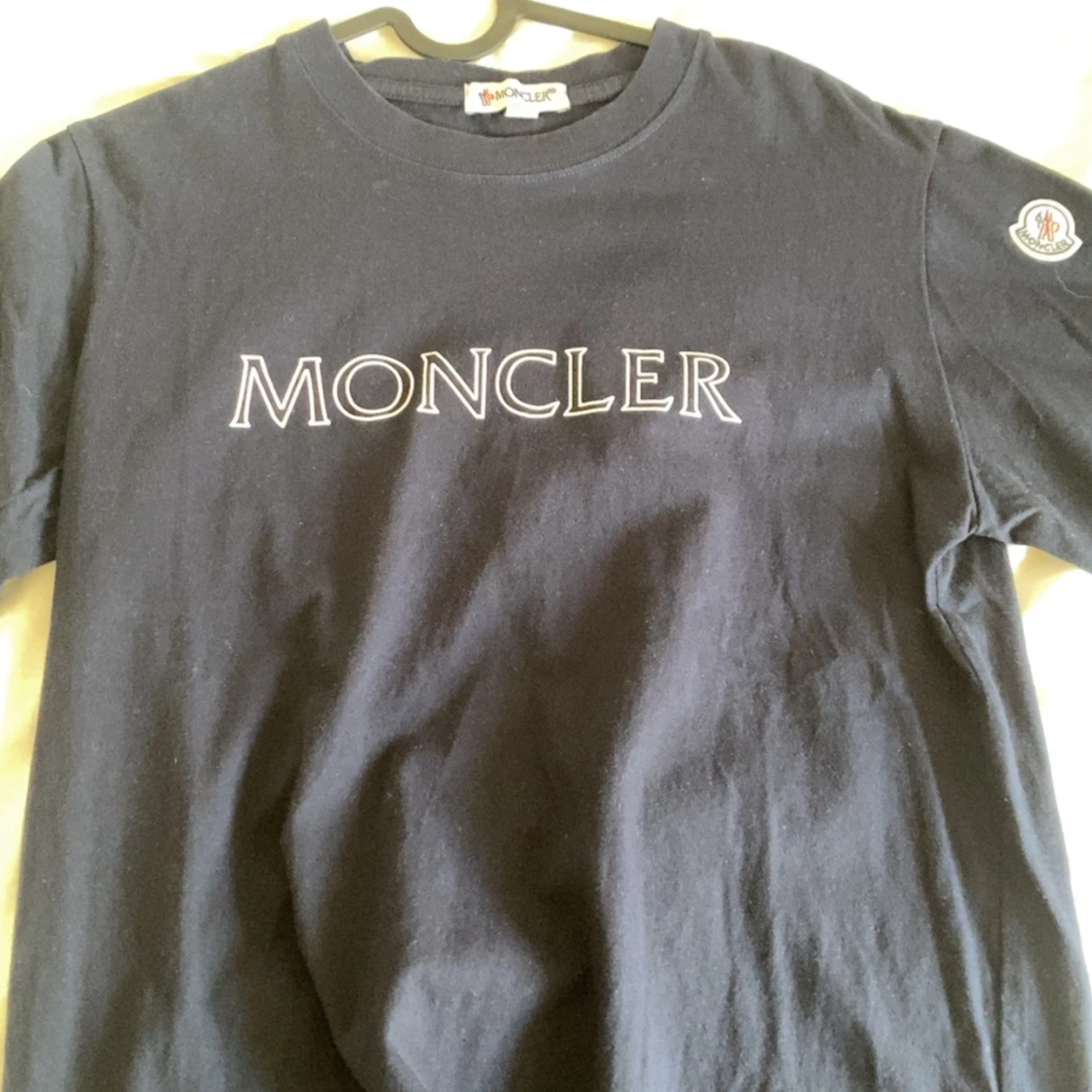 Svart t-shirt från Moncler i bomull med stor vit Moncler-logga på bröstet och klassisk patch på ärmen. Jätte bra skick! Pris kan diskuteras!!