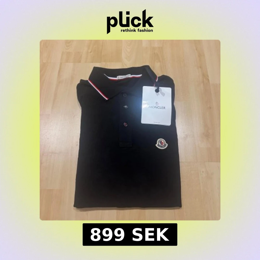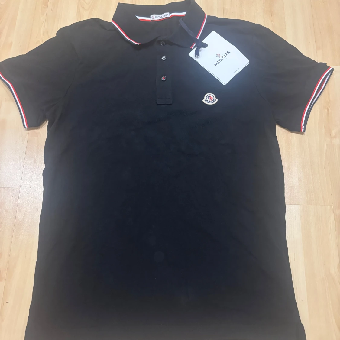 Svart pikétröja från Moncler med klassisk krage och knäppning framtill. Tröjan har Moncler-logga på bröstet och röda samt vita ränder på krage och ärmslut. Tillverkad i bomull för en skön och stilren känsla.
