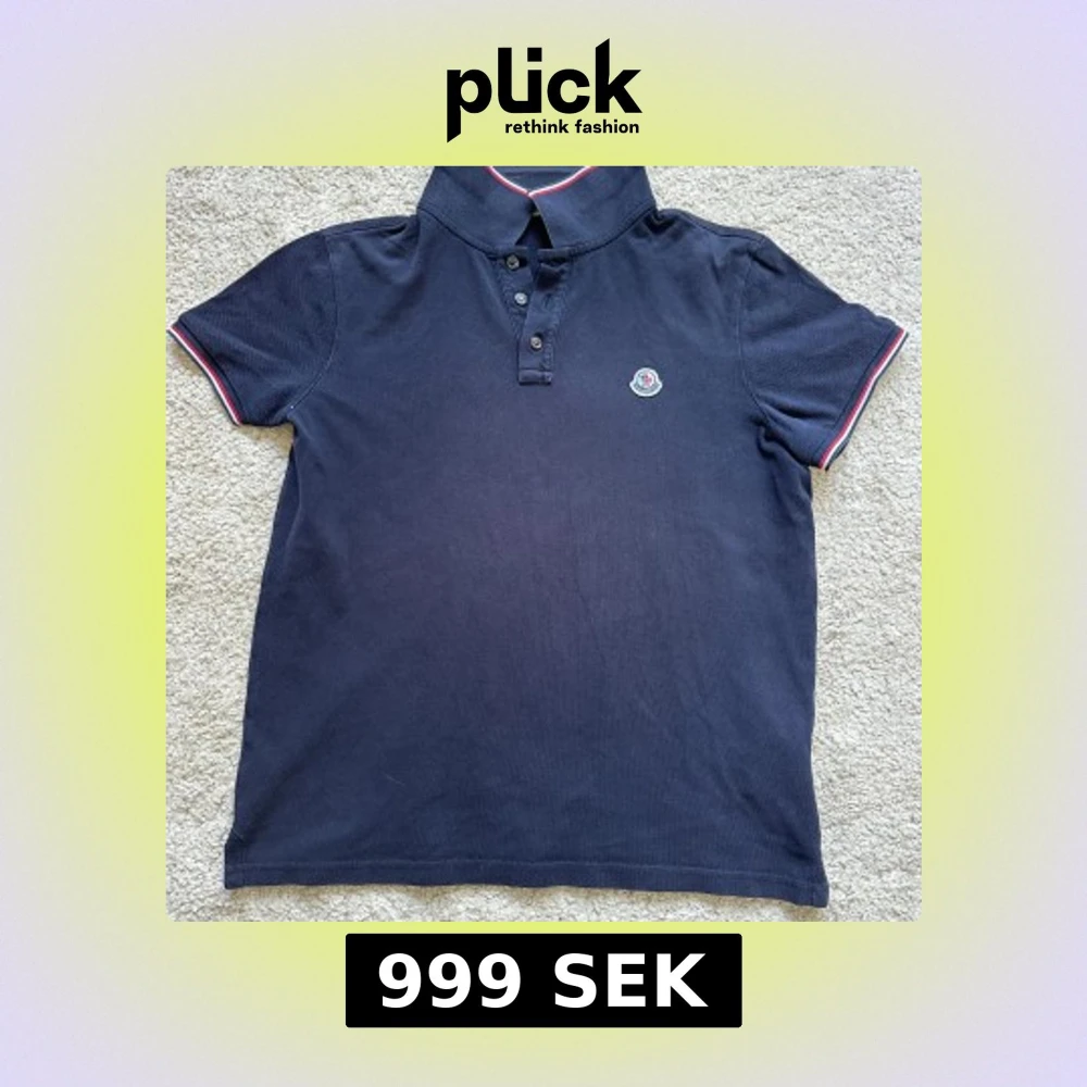 Mörkblå piké från moncler. Använd ett fåtal gånger. Skick 8,5/10. Köpt från careofcarl. Ställ frågor om ni har några. Priset är inte hugget i sten!🚨