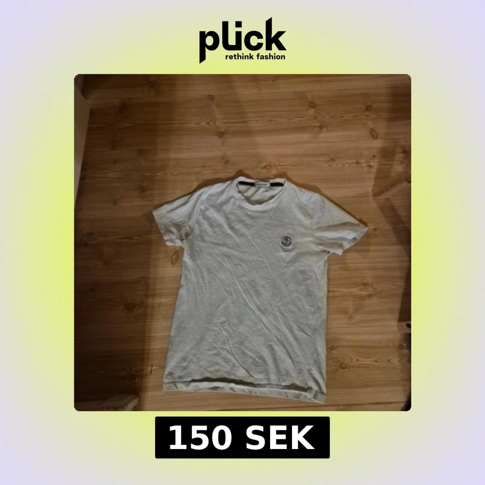 Vit t-shirt från Moncler med klassisk rund hals och broderad logga på bröstet. T-shirten är i bomull och har en enkel, stilren design som passar perfekt till jeans eller shorts. Skön passform och diskret branding för en clean look. kom med bud och frågor