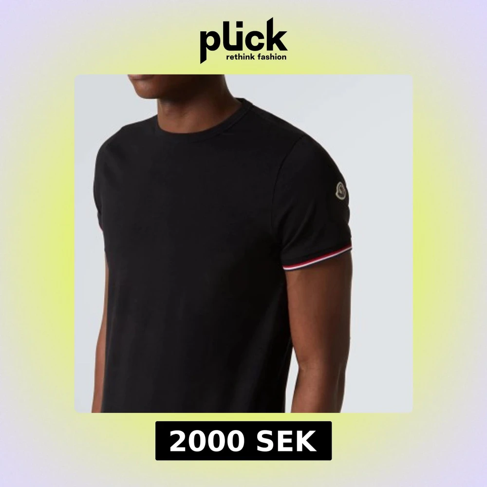 Svart t-shirt från Moncler i bomull med klassisk passform. Ärmarna har snygga rödvita detaljer och Moncler-logga på vänster ärm. Enkel och stilren design som passar perfekt till jeans eller shorts.