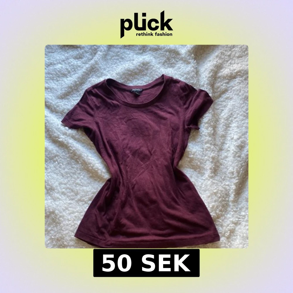 Säljer en stilren vinröd t-shirt från Monki i storlek XS. Den har en klassisk rund hals och korta ärmar, perfekt för en avslappnad look. Materialet känns mjukt och bekvämt mot huden. Passar perfekt till jeans eller kjol för en enkel och snygg outfit.