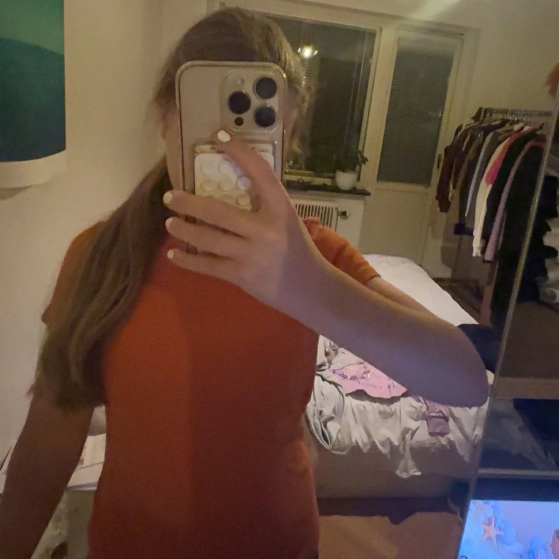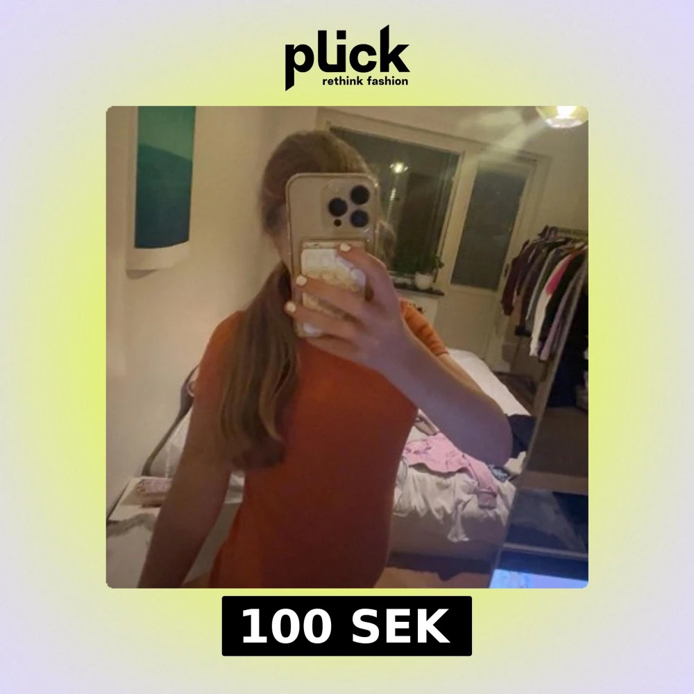 Säljer en enkel och snygg orange tröja med korta ärmar. Modellen är figurnära och har en klassisk rund halsringning. Perfekt för dig som gillar färg och vill ha en stilren look. Passar dig som vill ha en bekväm och trendig tröja.