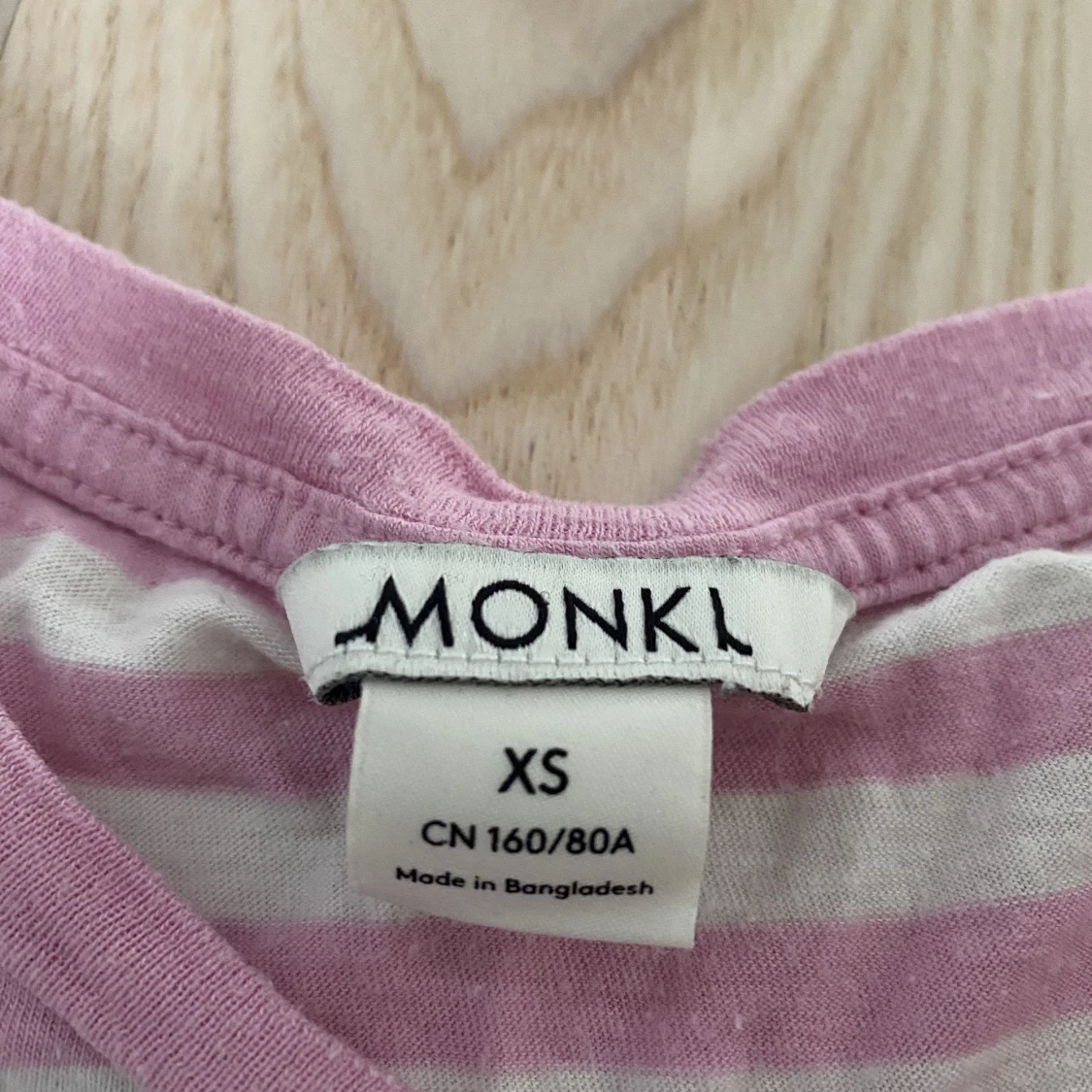 RENSAR! Säljer den här randiga rosa/vit t-shirten i strlk XS bra skick men ett litet hål