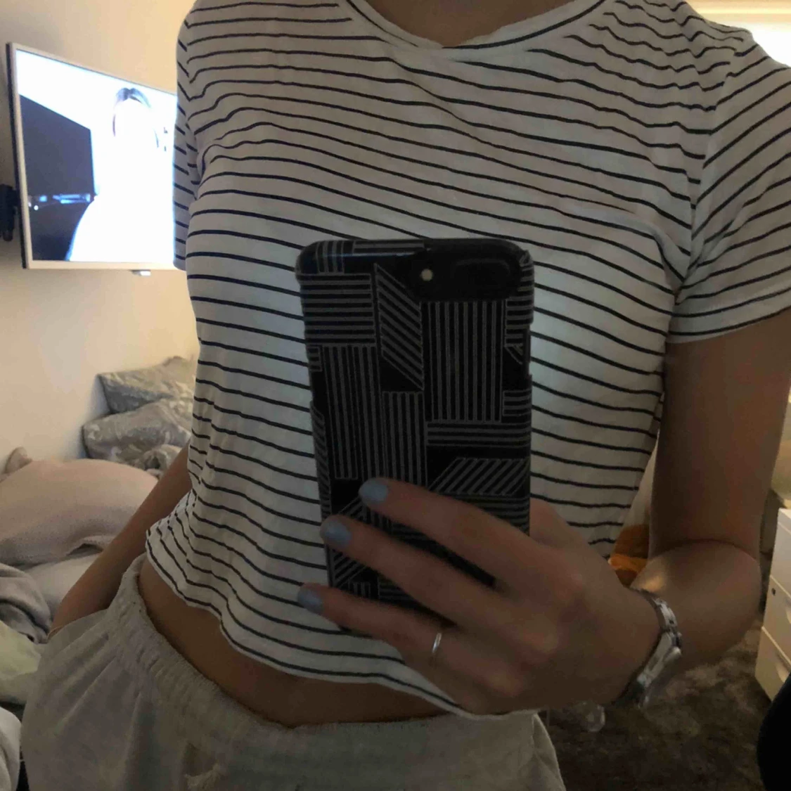 Enkel randig kortare t-shirt från monki i bra skick! Köparen står för frakt🤩