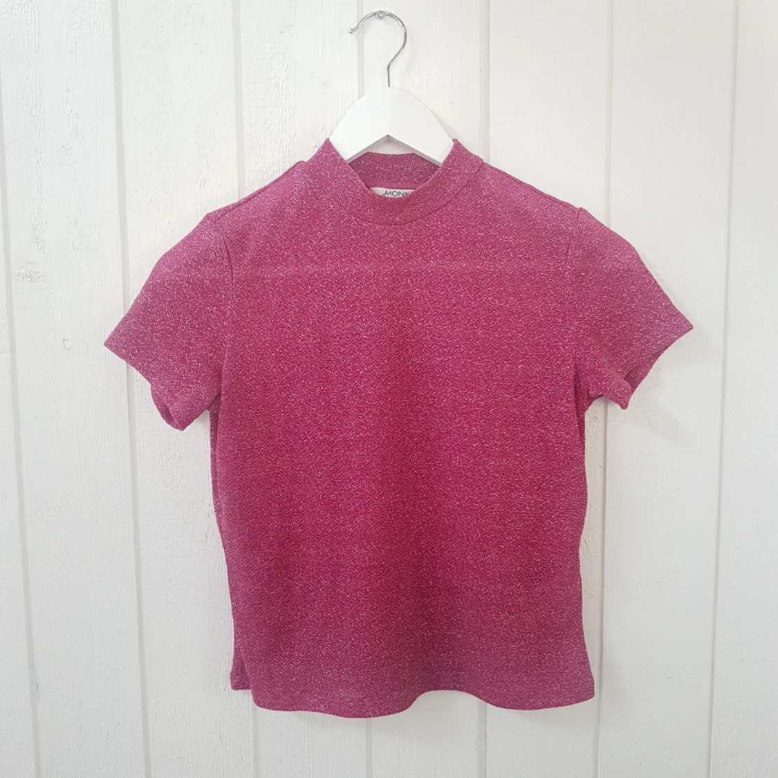 SLUTSPURT INFÖR FLYTT! På söndag drar jag iväg på folkis ett år, så försöker göra flyttlasset så lätt som möjligt! Här är en glittrande t-shirt från Monki i härlig cerise färg, jättefin att bära under klänning eller bara för sig! Pruta om du tycker priset är för högt!🧡🧡🧡
