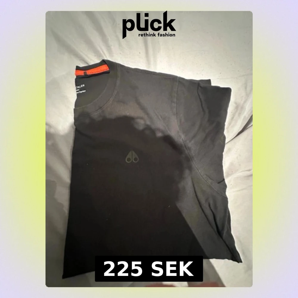 Svart t-shirt från Moose Knuckles i storlek L, tillverkad av 100% ekologisk bomull. Diskret logga på bröstet och tryckt varumärke vid nederkanten. Snygg orange detalj på insidan av kragen. Perfekt för dig som gillar stilrena och bekväma plagg.