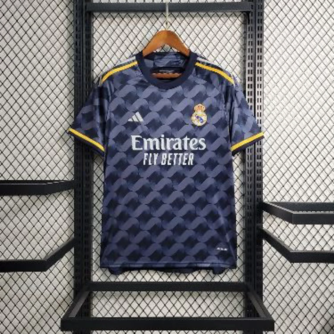 Snygg mörkblå fotbollströja från Adidas med ett unikt mönster och gula detaljer på ärmarna. Tröjan har korta ärmar och klubbens emblem på bröstet. Perfekt för fotbollsfans som vill ha något stilrent och sportigt.