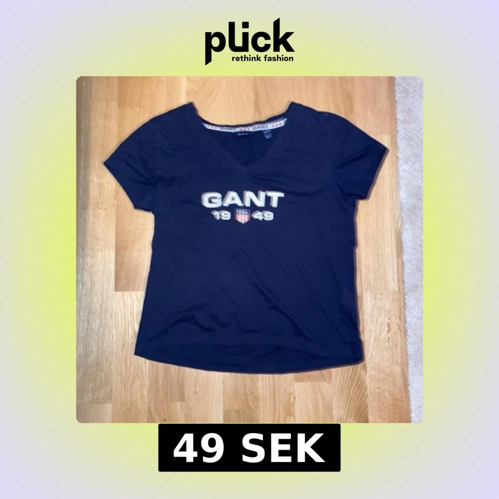 Mörkblå t-shirt från GANT med v-ringad hals och tryck framtill. T-shirten är kortärmad och gjord i bomull. Tröjan har en kort passform. Inga hål eller andra defekter