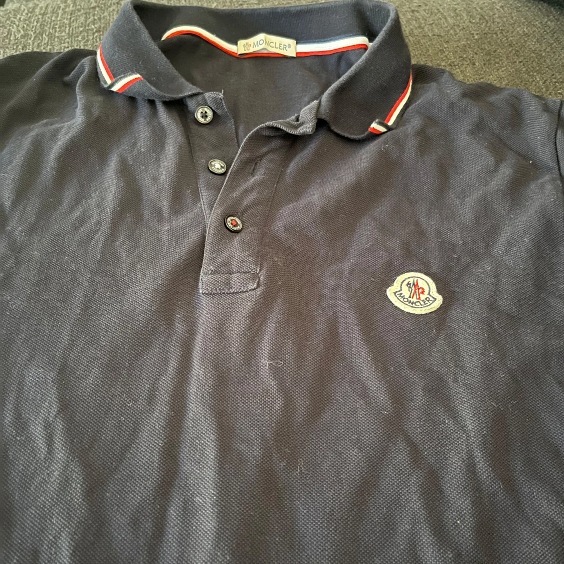 Säljer en mörkblå Piké från Moncler. Har använts lagom där av det billiga priset! Vid frågor eller funderingar tveka inte att höra av er! Passar S/M