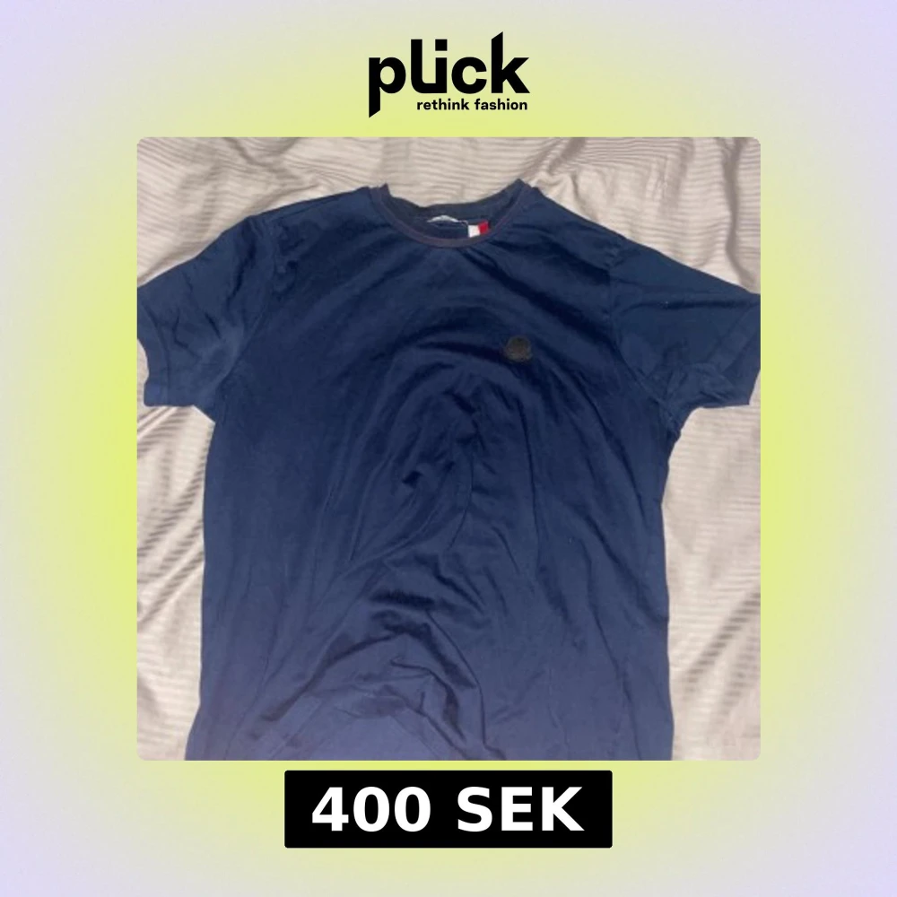 Snygg mörkblå t-shirt från Moncler med klassisk rund hals och diskret logga på bröstet. Tillverkad i mjuk bomull som känns skön mot huden. Perfekt för dig som gillar stilrena och exklusiva plagg. Röd vit detalj runt halsen. Storlek S