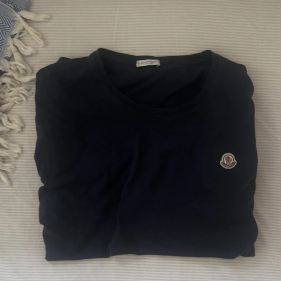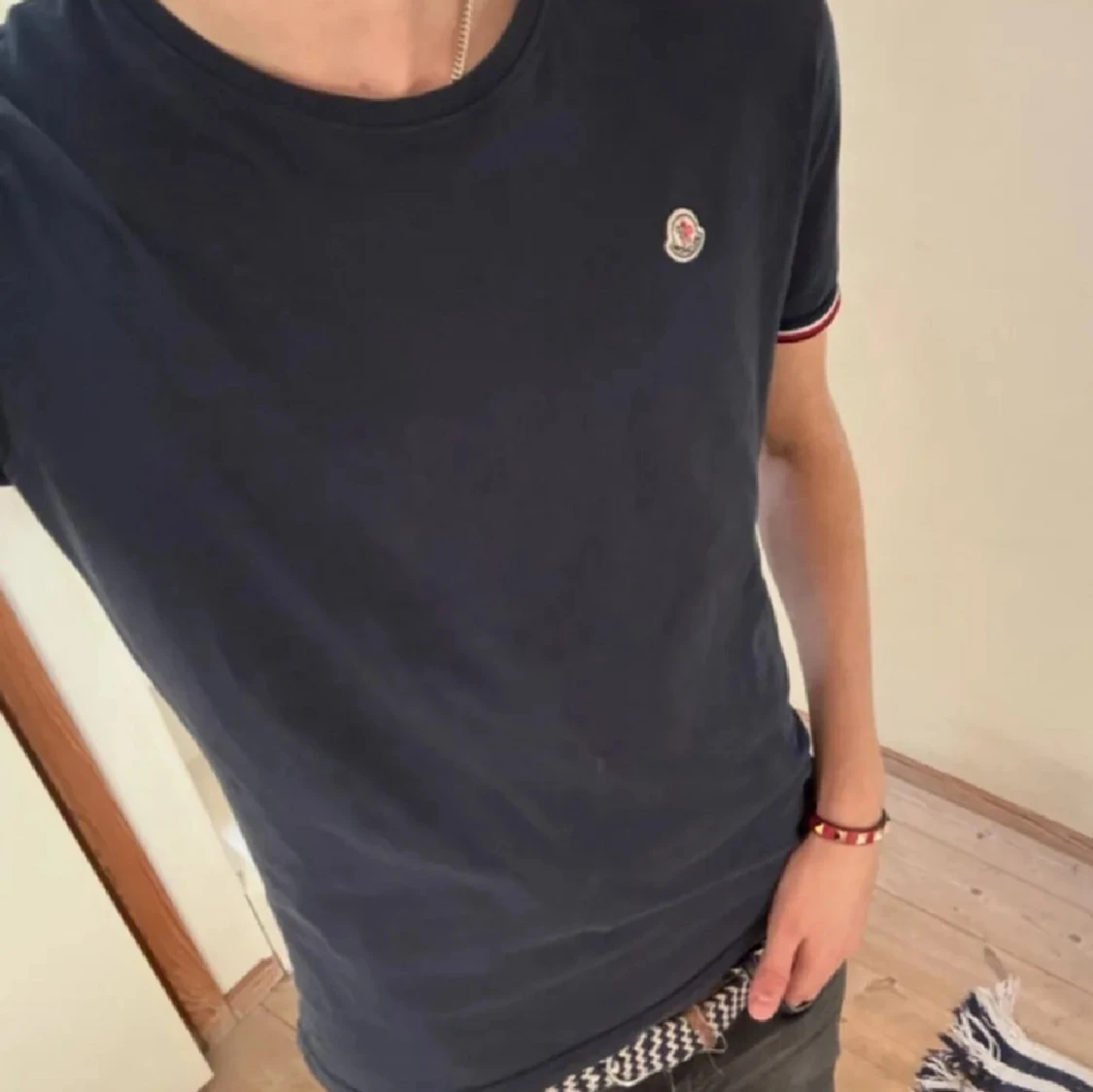 Säljer en ÄKTA monclear t shirt, tröjan är I storlek m och är blå. Ny pris på dessa är cirka 3000 kr men mitt pris är 599. Bevis finns, dock att industri tagen är borta men jag hade en bild innan med den på. Skriv vid frågor!!! Obs det är ett litet hål i tröjan.