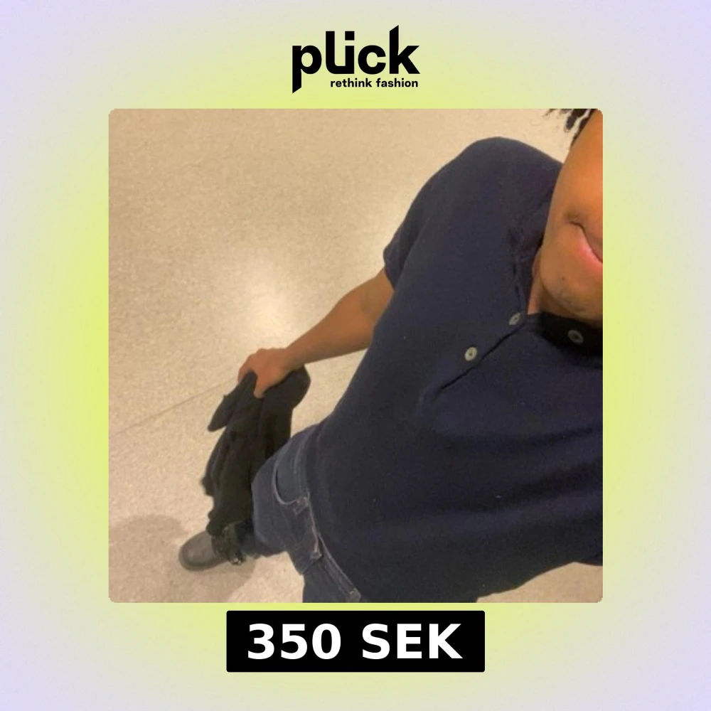 Säljer en stilren mörkblå pikétröja med klassisk krage och knappar framtill. Perfekt för en avslappnad men ändå uppklädd look. Passar bra till jeans eller chinos.