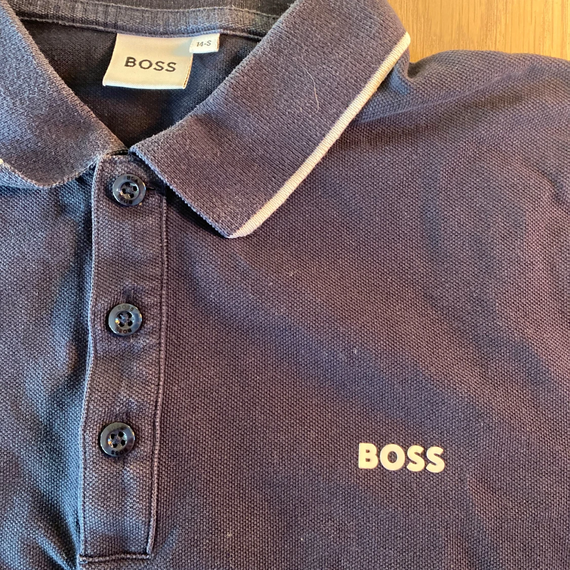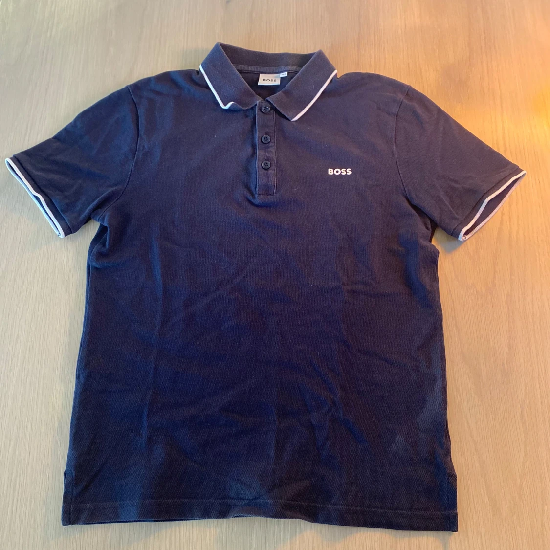 Snygg mörkblå pikétröja från Boss med klassisk krage och knappar framtill. Tröjan har vita detaljer på kragen och ärmsluten samt en diskret Boss-logga på bröstet. Perfekt för en stilren look. 🌟Rating ⭐️⭐️⭐️⭐️⭐️ 📏Size 14-S